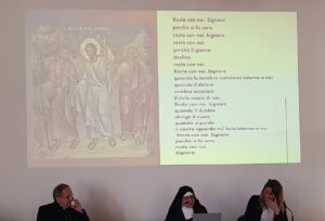 Al termine dell’incontro chi ha voluto si è spostato nella cappella adiacente al salone del Monastero Santa Speranza per pregare insieme i Vespri e poi concelebrare la Santa Messa, la cui Liturgia del giorno prevedeva il celebre brano evangelico di San Giovanni (Gv 15,1-8), in cui Gesù afferma: «Io sono la vite, voi i tralci. Chi rimane in me, e io in lui, porta molto frutto, perché senza di me non potete far nulla» . Queste le parole del vescovo Carlo Bresciani durante l’omelia: “C’è un verbo che ricorre frequente in questo brano: rimanere. Perché Gesù ripete così tante volte questo verbo? Perché sta aiutando i suoi apostoli e i suoi discepoli a capire cosa significhi seguire Lui, li sta aiutando a comprendere dove stia, dove risieda la vitalità della fede. Il paragone con la vite e i tralci serve a Gesù per dire che non solo noi siamo i tralci, quindi uniti a Lui che è la vite, ma che abbiamo bisogno della vite, ovvero della Sua linfa vitale. Quindi, se da una parte con il verbo rimanere sottolinea l’unità tra noi e Lui, dall’altra vuole anche sottolineare che questo rimanere non è un rimanere vuoto, passivo, bensì un rimanere che coglie, che prende linfa. Un rimanere che non varia a seconda delle stagioni, bensì è per sempre; un rimanere che attraversa le diverse vicende della vita, che è nel periodo primaverile ed estivo, quando le foglie crescono verdi e rigogliose e i frutti abbondanti, ma che è anche nell’autunno e nell’inverno, perché il rimanere è il presupposto di una sempre nuova vitalità. È un rimanere che è l’unico strumento che permette che la nostra vita cristiana non sia solo un sopravvivere, bensì porti molto frutto, come dice il testo evangelico. Qual è dunque il frutto di cui parla Gesù? Qual è la linfa che fa vivere la vite? L’amore per il Padre e l’amore per l’uomo. È questo che ha mosso tutta la vita di Gesù. Questo significa che il nostro rimanere in Gesù significa cogliere questa linfa e farla diventare la nostra stessa vita”.