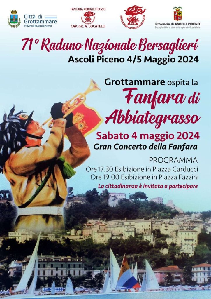GROTTAMMARE – In occasione del 71° raduno dell’Associazione Nazionale Bersaglieri – in programma nei giorni 4 e 5 maggio ad Ascoli Piceno -, Grottammare ospita la Fanfara di Abbiategrasso, che sfilerà per le vie e le piazze della città esibendosi in un duplice concerto per la cittadinanza, sabato 4 maggio.