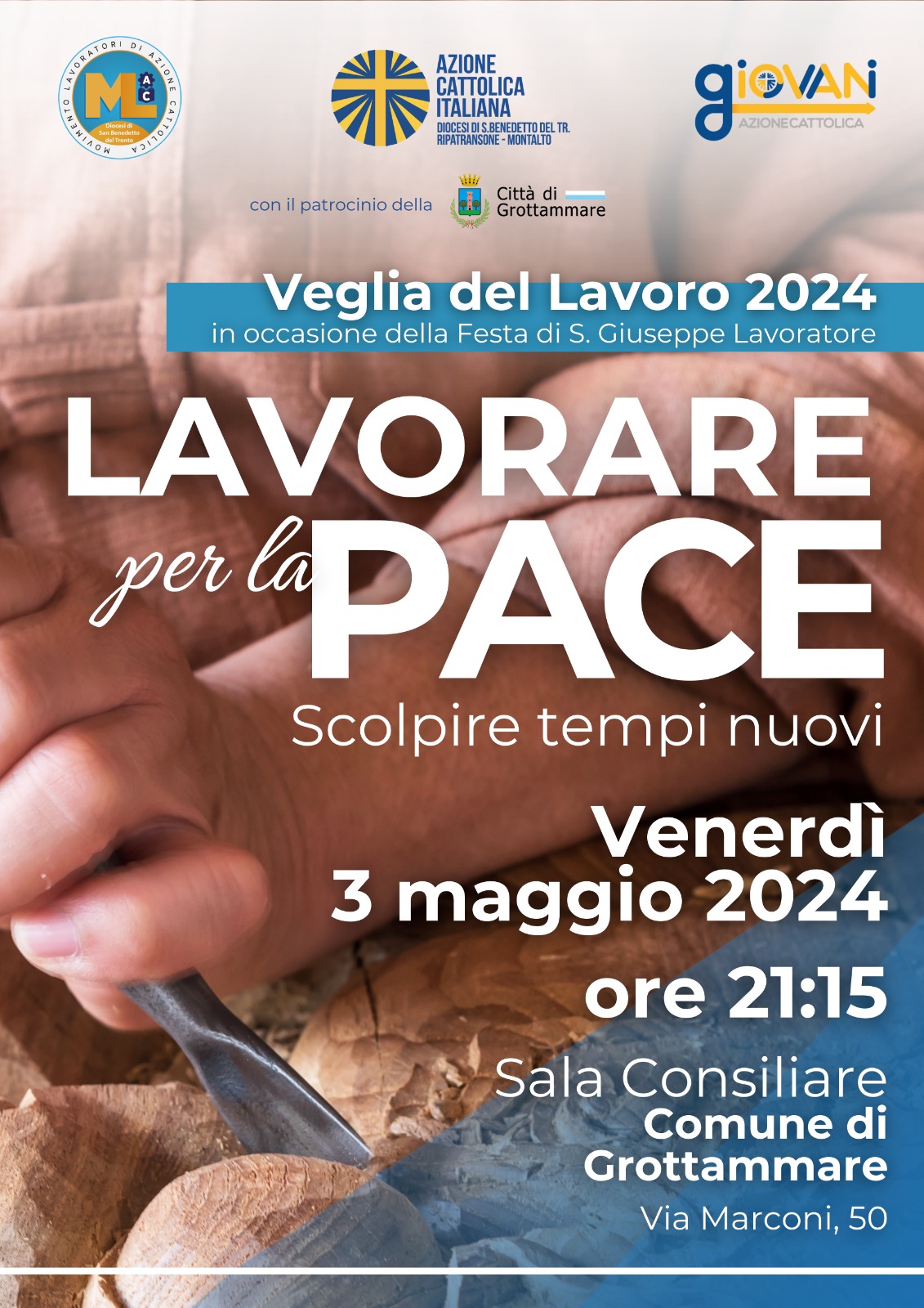 DIOCESI – Si svolgerà Venerdì 3 Maggio 2024, alle ore 21:15, presso la Sala Consiliare del Comune di Grottammare, la Veglia del Lavoro 2024 organizzata dalla Movimento Lavoratori di Azione Cattolica della Diocesi di San Benedetto del Tronto – Ripatransone – Montalto. L’evento, che rientra nell’ambito delle iniziative organizzate in occasione della festa di San Giuseppe Lavoratore, ha ottenuto il patrocinio del Comune di Grottammare.