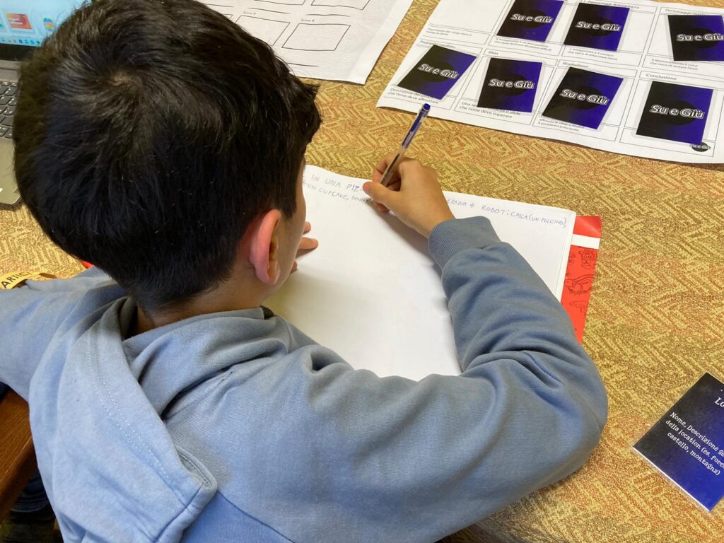 Questo progetto rientra nell’ambito delle iniziative promosse dall’associazione Praesentia. Nel corso di questi incontri insegno ai ragazzi nozioni e tecniche di storytelling, regia, ripresa, montaggio, stopmotion e intelligenza artificiale. Tutto questo con la finalità di contrastare le dipendenze digitali e sviluppare in loro la creatività. Lo scorso anno ho promosso questo laboratorio all’Internet festival di Pisa al quale hanno partecipato circa 200 alunni. Tengo a precisare che tutto il materiale che ho ideato per questo laboratorio creativo e inclusivo, come carte per lo storytelling, modelli per disegnare story board, tabelloni sono griffati con il nome del format “Suegiu” un progetto partito dalle Marche che sta facendo il giro d’Italia: un’iniziativa di Crowdfunding finalizzata a sostenere progetti sociali.