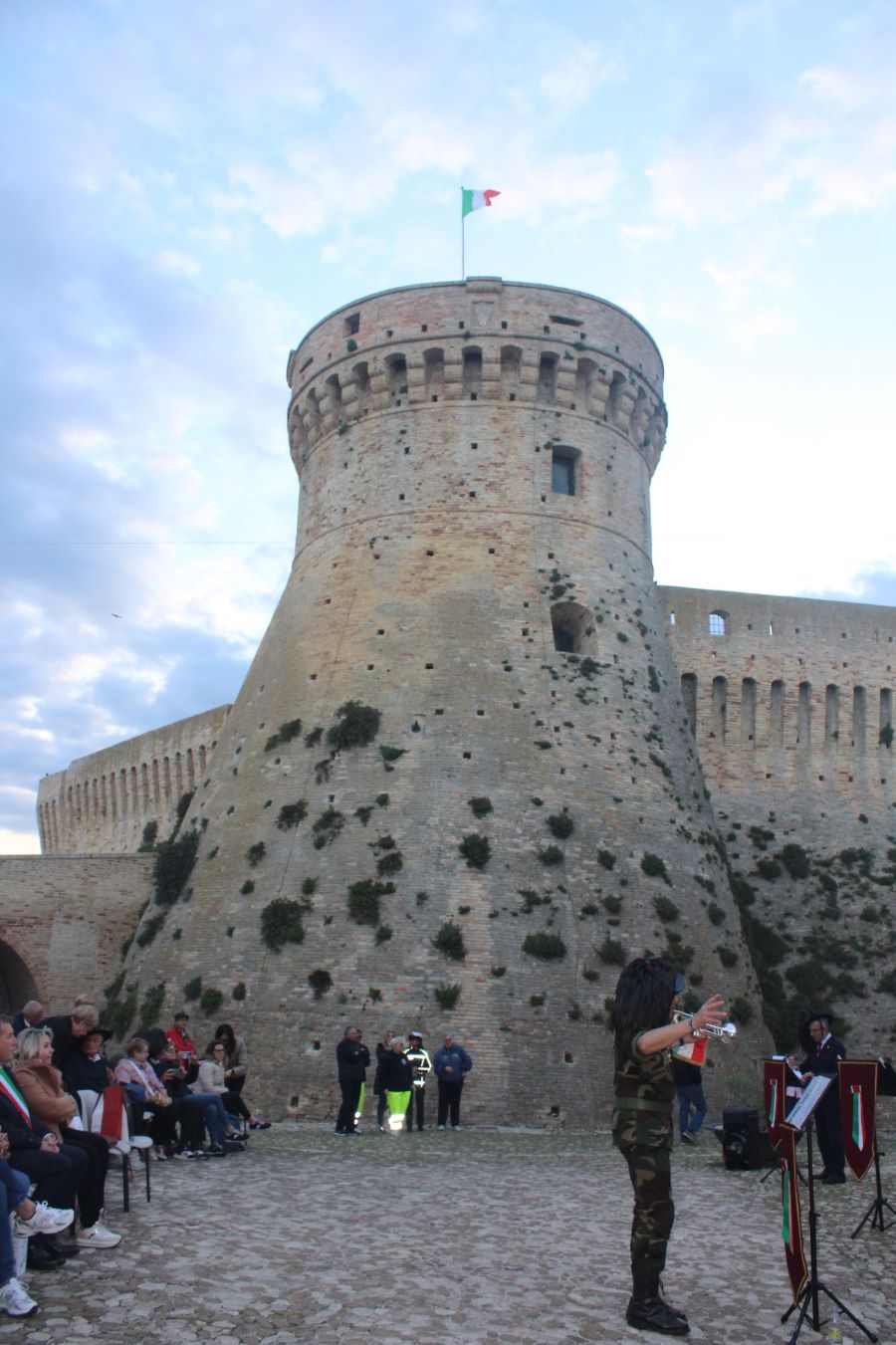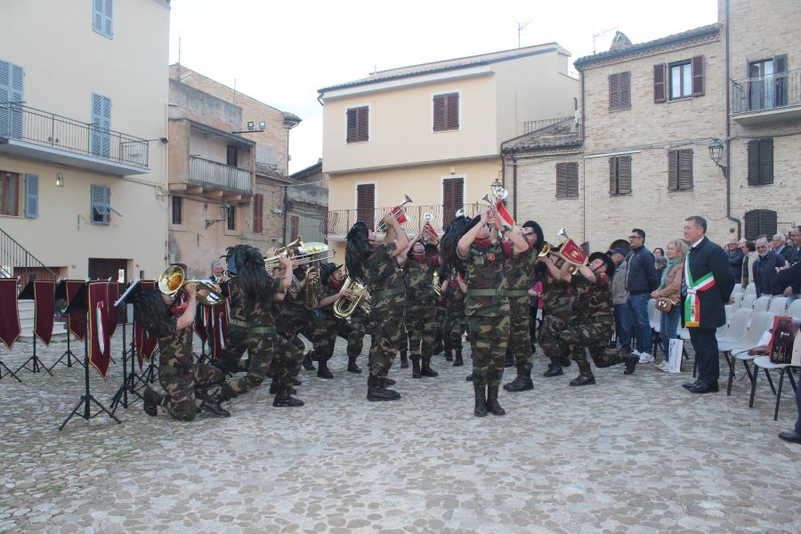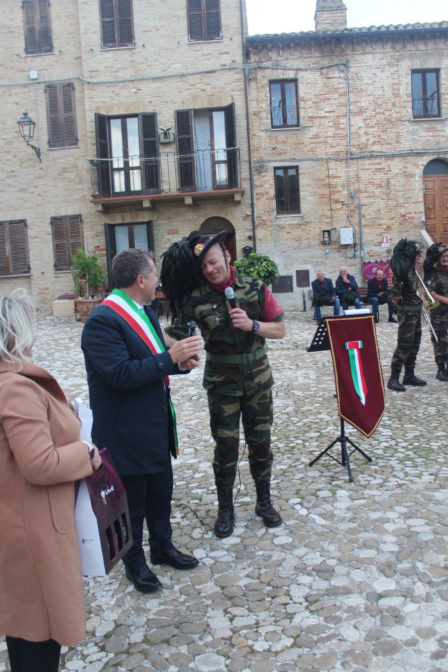 L’Associazione nazionale bersaglieri di Ceggia è stata accolta in Piazza del Forte dove, oltre a molti spettatori, erano presenti il sindaco di Acquaviva Picena, Sante Infriccioli e l’Assessore alla cultura e turismo, Marianna Spaccasassi.