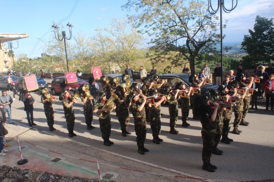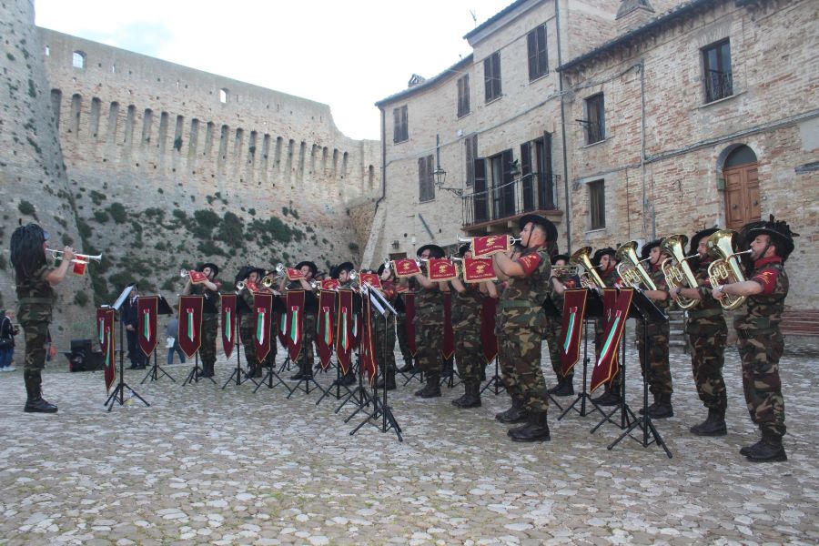 ACQUAVIVA PICENA -Il pomeriggio di sabato 4 maggio, il centro storico di Acquaviva Picena ha potuto ospitare la Fanfara dei bersaglieri di Ceggia (provincia di Venezia).