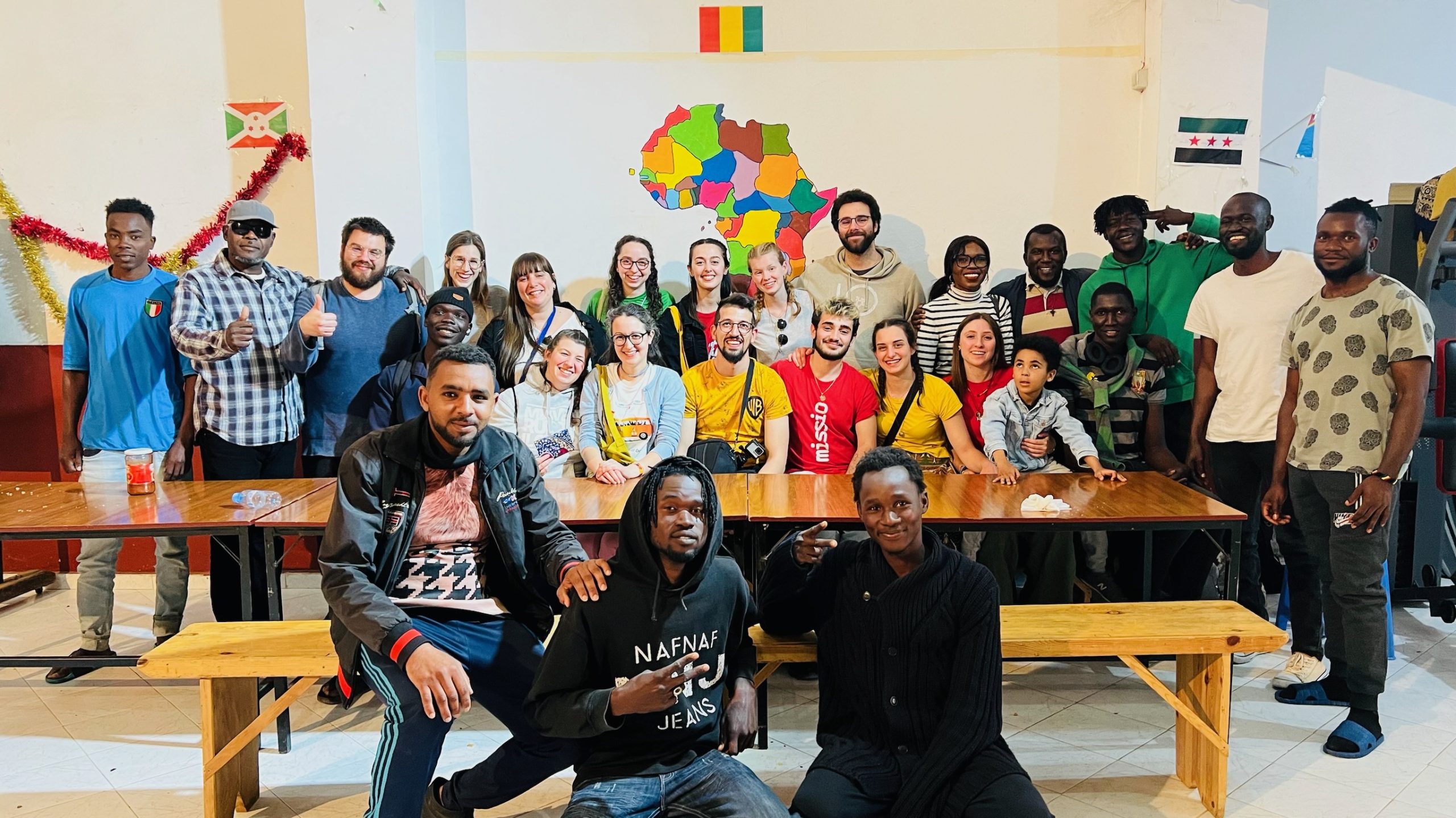 che i missionari qui vivono ogni giorno mettendosi in gioco con tutto se stessi in maniera evangelica e profetica. Il senso della nostra presenza ad Oujda non era tanto legata al dare una mano – che pure è necessario – quanto allo stare con i missionari e con i ragazzi migranti, giovani tra giovani, per condividere sogni e cammini, per mettersi in ascolto delle loro storie e conoscere da vicinissimo cosa vuol dire per loro questo viaggio drammatico. Ogni momento di dialogo con loro è stato struggente, i nostri giovani non riuscivano a trattenere le lacrime mentre ascoltavano le testimonianze dei ragazzi migranti, mentre mostravano loro i video registrati durante il viaggio nel deserto o nei campi di prigionia libici. Preziose anche le parole dei missionari, p. Edwin, p. Patrick e p. Francesco, che ci aiutavano ad entrare pienamente in ogni momento della giornata.
