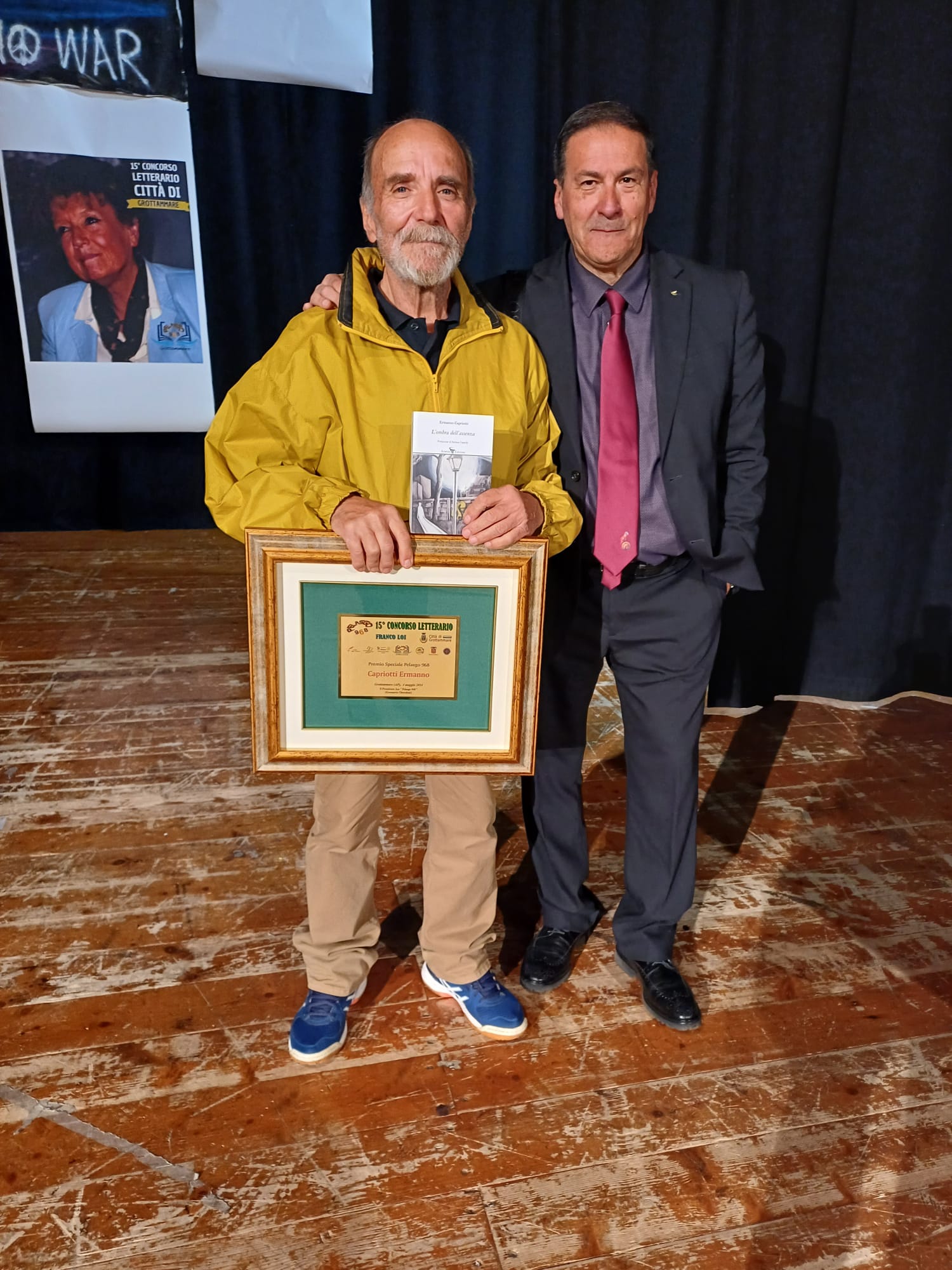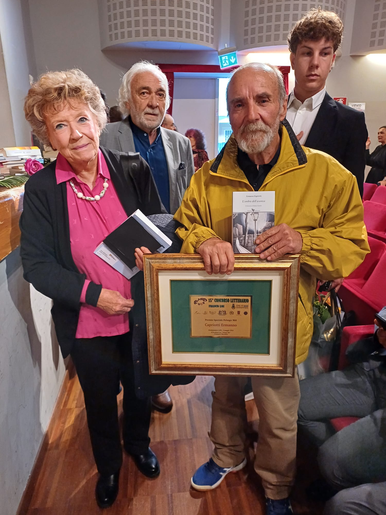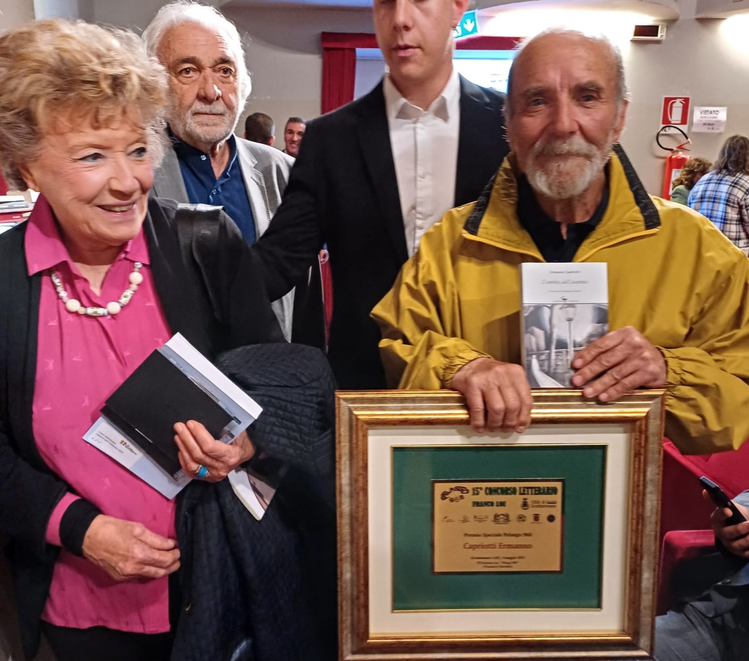 COLONNELLA – Un altro importante riconoscimento per il poeta colonnellese Ermanno Capriotti, che, con il suo libro di poesie “L’ombra dell’assenza” di Arsenio Edizioni ha ricevuto il Premio Speciale Pelasgo 968 durante la 15° edizione del Premio Letterario Nazionale Città di Grottammare – Franco Loi. La cerimonia di premiazione è avvenuta Sabato 4 Maggio 2024, alle ore 15:30, presso il Teatro delle Energie di Grottammare, dove Capriotti ha ritirato il prestigioso Premio sotto gli occhi della moglie, la prof.ssa Pasqua Gina D’Ambrosio, visibilmente commossa, e della celebre scrittrice Dacia Maraini, presidente onoraria del Premio, a cui il sindaco di Grottammare, Alessandro Rocchi, ha conferito nella stessa occasione la cittadinanza onoraria.