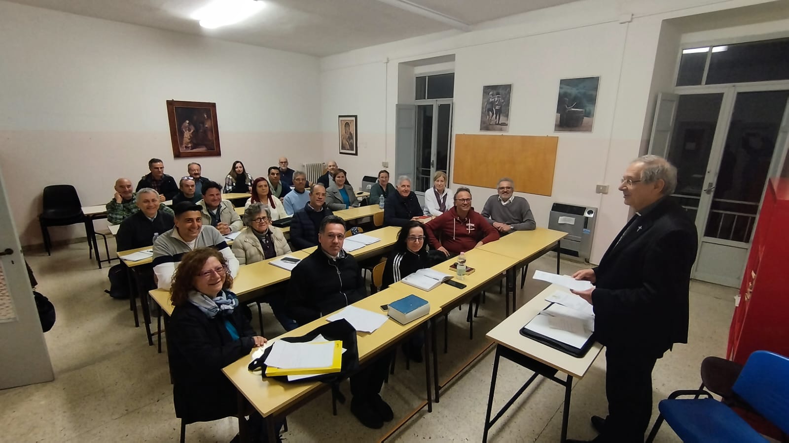 DIOCESI – Serata speciale quella di Venerdì 3 Maggio 2024 per la Scuola di Formazione Teologica della Diocesi di San Benedetto del Tronto – Ripatransone – Montalto: docenti e discenti, infatti, hanno sorpreso il loro presidente, Mons. Carlo Bresciani, con un piacevole e gustoso fuori programma, a seguito della nomina di Mons. Gianpiero Palmieri come nuovo vescovo diocesano.