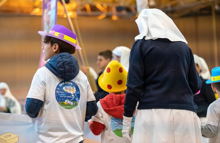 Una caratteristica di questo pellegrinaggio verso Lourdes, dove i protagonisti sono i piccoli, è lo straordinario compagno di viaggio, Pinocchio.