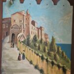 Nello studio professionale dell’Ingegner Fabbioni, al Paese Alto di Grottammare, in una delle vie più significative ed antiche, ossia Via Palmaroli, subito prima dell’ingresso al borgo e subito dopo l’antico Ospedale “Madonna degli Angeli”, vi era un’antica Farmacia sicuramente preesistente alla frana del 1779 di Grottammare. Verrà costruita dopo il 1770 dalla Famiglia Marchetti, la cui casa non appare nel catasto del 1770. Troviamo invece nel catasto in questione l’attuale casa Fabbioni un tempo di Gabriele Marconi. Quindi trattasi di un edificio preesistente al 1770, molto antico, forse del precedente secolo, il XVII. Per ordine da sud: casa Fabbioni ex Marconi, poi casa Marchetti con farmacia e palazzo Luigi Palmaroli, oggi Ristorante “Papa Sisto”. Con la sopraelevazione della strada, che si può ben vedere dalle foto che allego in galleria, i proprietari che si affacciavano su strada, improvvisamente “interrati”, vennero risarciti con l’acquisizione di locali sottostanti le logge di rinforzo del sottostrada o, come nel caso dei Marchetti, con la sopraelevazione della farmacia al primo piano anziché al piano terra, più un ampliamento e un frustolo di giardino retrostante. Tra le foto vi allego un dipinto che realizzai copiando un noto quadro del pittore grottammarese Pietro Palmaroli, nobile nato a Grottammare nel 1778 ( un anno prima della frana ) e scomparso a Roma nel 1828 all’età di 50 anni. Pur non avendo potuto vedere l’antica e originaria strada che probabilmente crollò, sentendo i racconti dei genitori, la volle raffigurare così com’era, come ricordo.