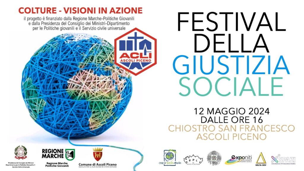 PROVINCIA – “Festival della Giustizia Sociale” sarà l’evento conclusivo del progetto “COLTURE – Visioni In Azione” proposto e attuato dalle ACLI provinciali di Ascoli Piceno aps e i suoi partner che ha coinvolto oltre 400 giovani di vari istituti scolastici della provincia di Ascoli Piceno, giovani operatori e giovani con diversi gradi di disabilità.