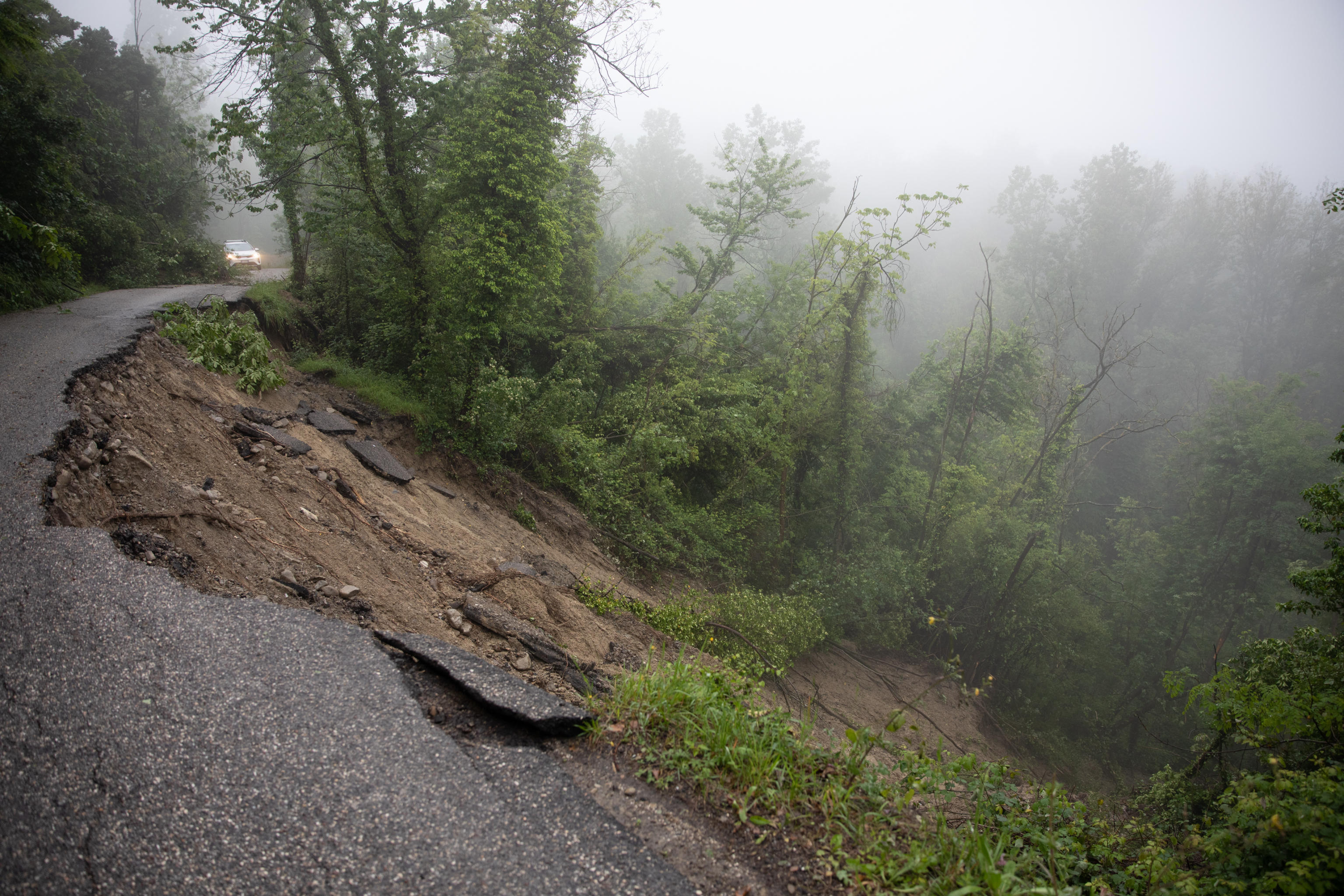 I restringimenti di carreggiata non diversi. La stretta via che porta alla chiesa di Monte Sorbo è emblema di quel che successe qui un anno fa: la viabilità è stata riaperta, ma non si può certo affermare che il terreno sia stato messo in sicurezza. D’altronde, dai primi censimenti delle settimane successive al 16 maggio che parlavano di 7000 eventi franosi, si è arrivati ora alla cifra di 80 mila. Un dato che dimostra come il terreno sia fragile e come sia complicato rimettere in sesto una media montagna che rischia di essere ancora più abbandonata.