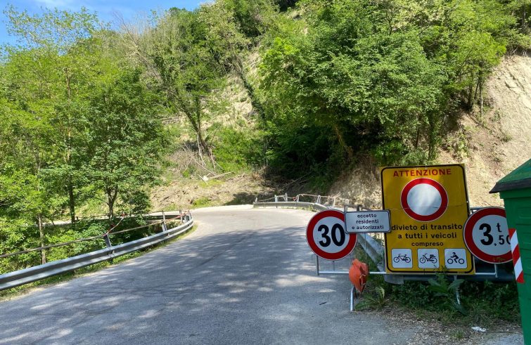 In località Musella si transita grazie a un by pass creato sul terreno di un privato che si vede gli automezzi passare quasi sulla porta di casa. La strada interrotta mostra voragini imponenti, rimaste com’erano dodici mesi fa. Anche a Tezzo, in ambito comunale di Sarsina, l’asfalto è nuovo e la transitabilità è assicurata. Il video di quel che accadde in quei giorni fece il giro del mondo, con la montagna che si accartocciava su se stessa.