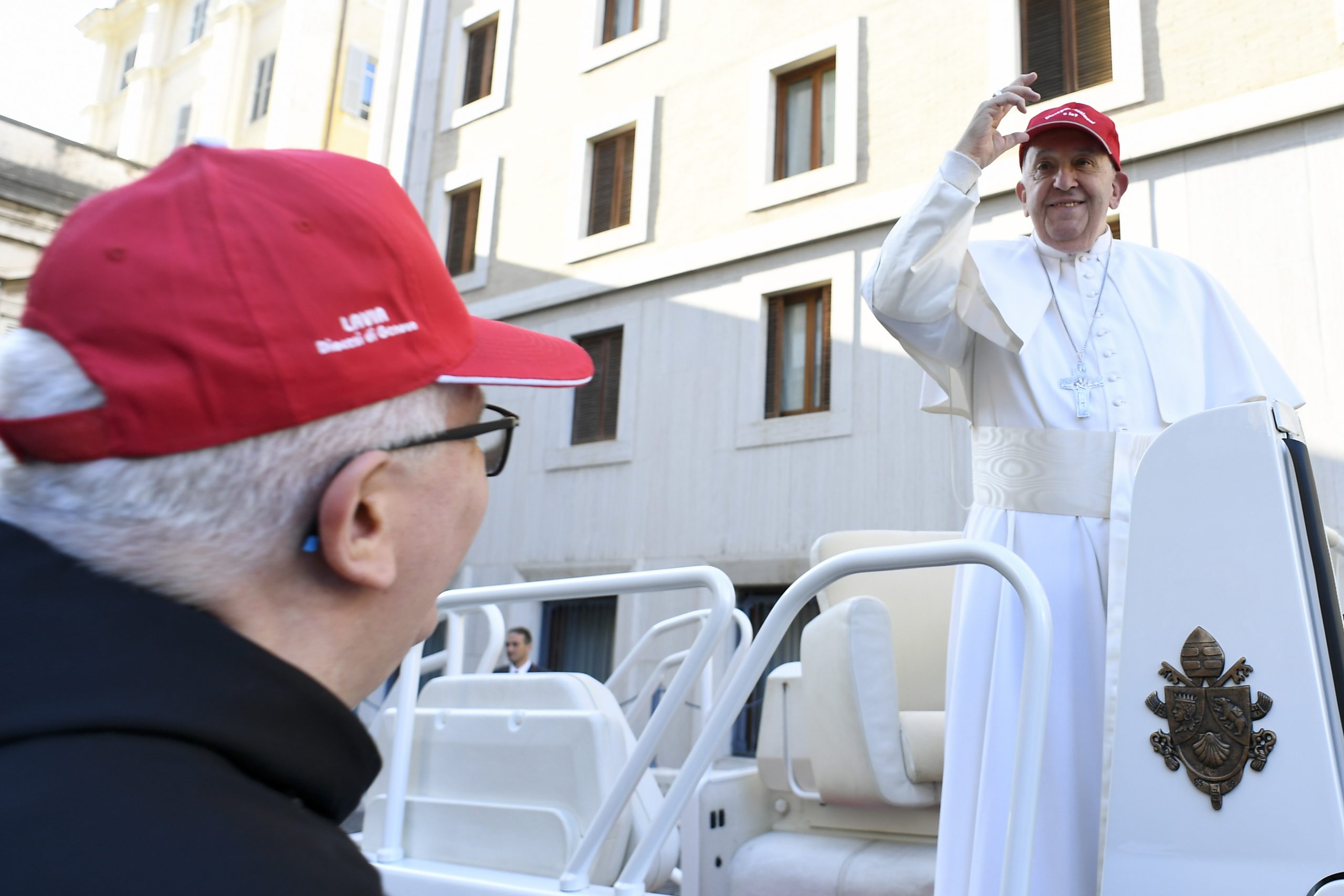 Il pellegrinaggio a Roma per oltre 1.000 ragazzi dell’arcidiocesi di Genova è una straordinaria esperienza di fede. Tra i momenti più attesi, l’abbraccio questa mattina con il Papa nel piazzale di Santa Marta in Vaticano. “Siete stanchi del viaggio? Quante ore di bus? Avete fatto chiasso?”. Dopo queste prime domande di Francesco – come riporta Vatican News – è seguito un breve discorso. “Sono contento di vedervi”, ha detto il Pontefice incontrando i ragazzi cresimati e cresimandi giunti dal capoluogo ligure. Francesco li ha invitati ad intonare una canzone e i giovani hanno subito risposto con un coro. Il Papa ha poi chiesto ai ragazzi di salutare i nonni e i genitori. “I nonni – ha affermato il Pontefice – sono persone sagge e buone”. Ai ragazzi il Papa, che ha indossato il cappello rosso utilizzato per il pellegrinaggio, ha donato un rosario, “come ricordo del viaggio”.