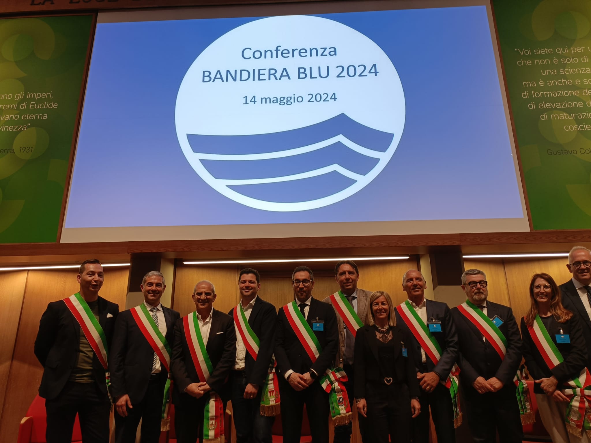 La Bandiera Blu è stata ritirata personalmente dal sindaco Alessandro Rocchi (nella foto, con gli altri amministratori della Riviera delle Palme).