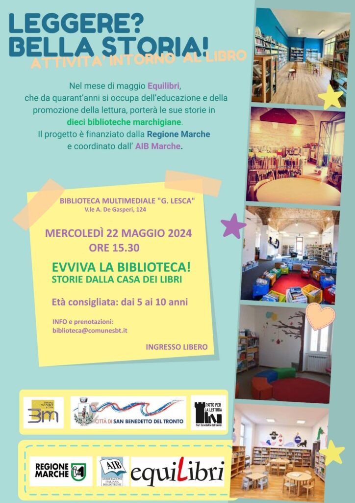SAN BENEDETTO DEL TRONTO – La Biblioteca comunale “Giuseppe Lesca” ha aderito per il 2024 al progetto dell’Associazione Italiana Biblioteca – AIB Marche dedicato alla lettura e intitolato “Leggere? Bella storia! Attività intorno al libro”.