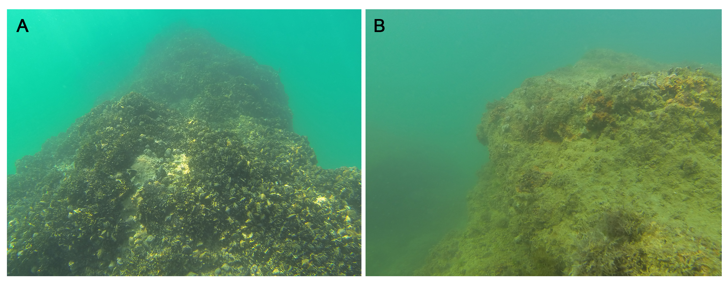 “Chiunque abbia mai messo la “testa sott’acqua” in prossimità degli scogli della nostra zona. – sottolineano i ricercatori Unicam – ricorderà senz’altro una fitta copertura degli stessi da parte dei mitili; a settembre 2022 la situazione era cambiata drasticamente, tanto che gli scogli sommersi erano praticamente privi degli organismi marini che di solito vivono a stretto contatto con questo substrato”.