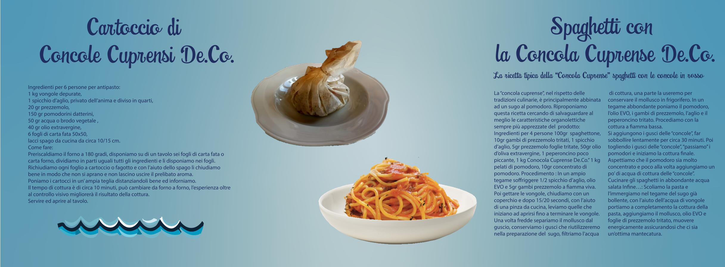 Ora la De.Co. finalmente arriva a tavola! Diverse sono le strutture lungo il territorio che hanno deciso di sottoscrivere il disciplinare per inserire nei loro menù i due piatti tipici a base della “Concola Cuprense De.Co”: gli spaghetti rossi al sugo di concole e il cartoccio di concole. Per gustare queste prelibatezze basta consultare l’APP o il portale turistico e trovare il ristorante aderente più vicino. Tali ristoranti saranno riconoscibili anche da una vetrofania apposta all’ingresso del ristorante e accompagneranno le prelibate pietanze del disciplinare con la relativa brochure informativa.