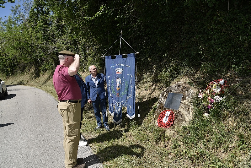 Il sindaco Marino Screpanti e il Maggiore dell’Esercito Britannico Jonathan White TO VR, hanno posato una corona di papaveri rossi sulla targa che ricorda il sacrificio del giovane scozzese. Steve Sims della HELMS, il Maggiore White e Cristina Franca (rappresentante dell’Associazione Combattenti e Reduci di Montelparo) hanno insieme apposto, in ricordo, una piccola croce in legno: “In Remembrance”. Steve Sims poi ha mostrato video e foto della sua visita al Cimitero Militare di Coriano vicino Rimini, Coriano Ridge War Cemetery , dove il corpo di “Giorgio” riposa insieme a molti altri suoi compagni che subirono la sua stessa sorte.