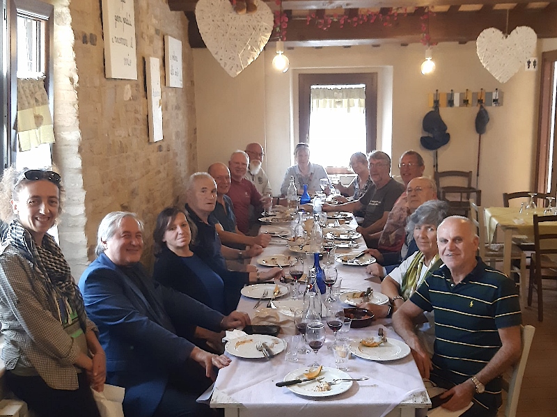 E’ per questo che, nella tarda mattinata dello scorso venerdì 17 Maggio, i partecipanti si sono ritrovati per un aperitivo da “Diamoci del TU / Pizzeria – Bistrot” di Montelparo per poi spostarsi presso il Ristorante “Il Gufo e la Civetta” per un pranzo sociale.