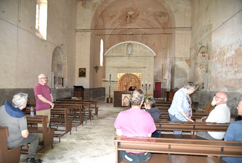 Durante il tragitto non poteva mancare una visita al meraviglioso Santuario di Santa Maria in Camurano, coi suoi preziosi affreschi! La stessa è stata guidata dal rappresentante dell’Associazione Culturale “Il Murello” Giuseppe Mariucci che, con l’aiuto dell’interprete Jam Mc Harty, ha potuto illustrare i pregi di questo rarissimo monumento storico Agreste. Certamente molti avranno qui recitato una preghiera in ricordo di tanti immani sacrifici.