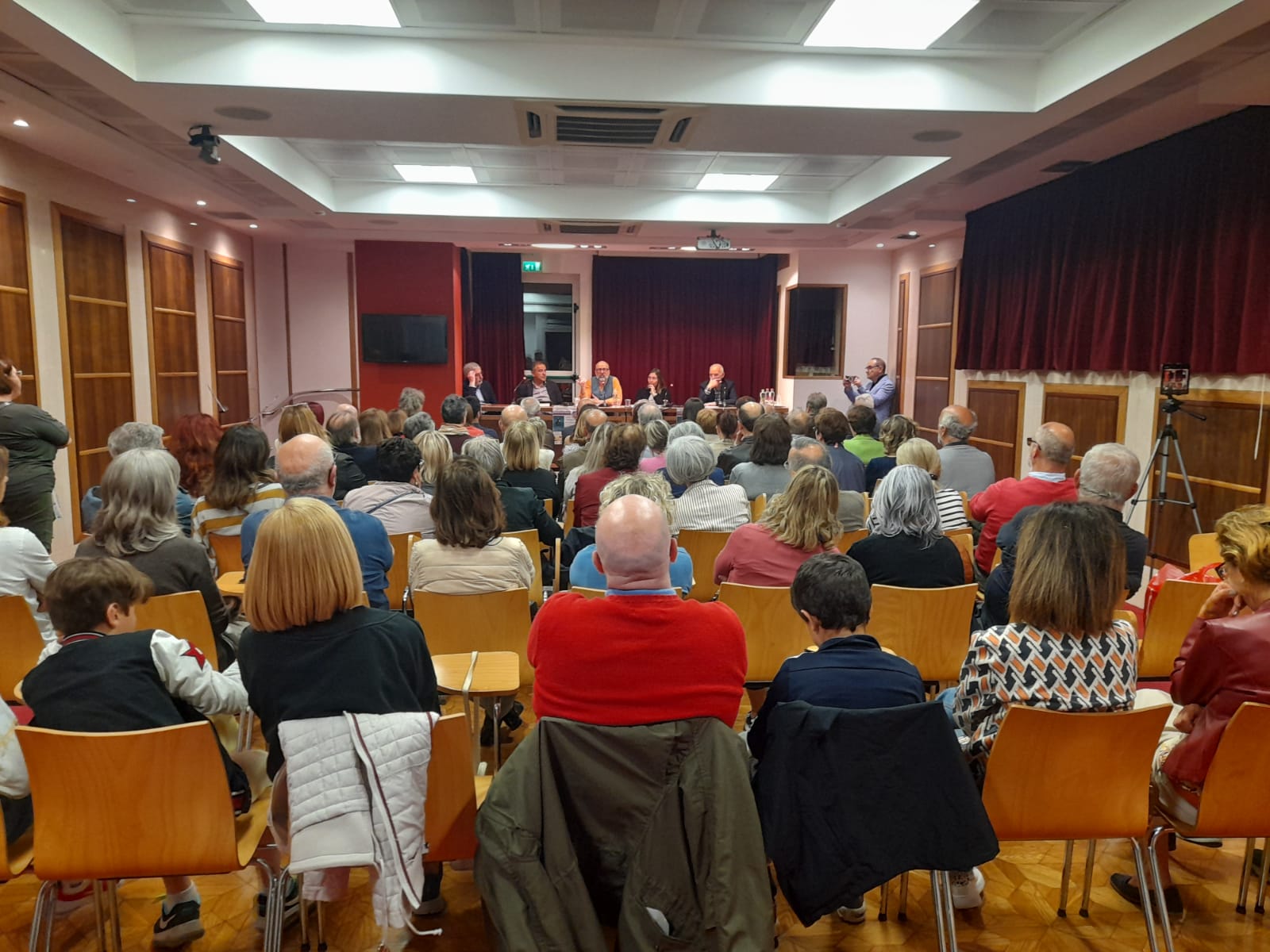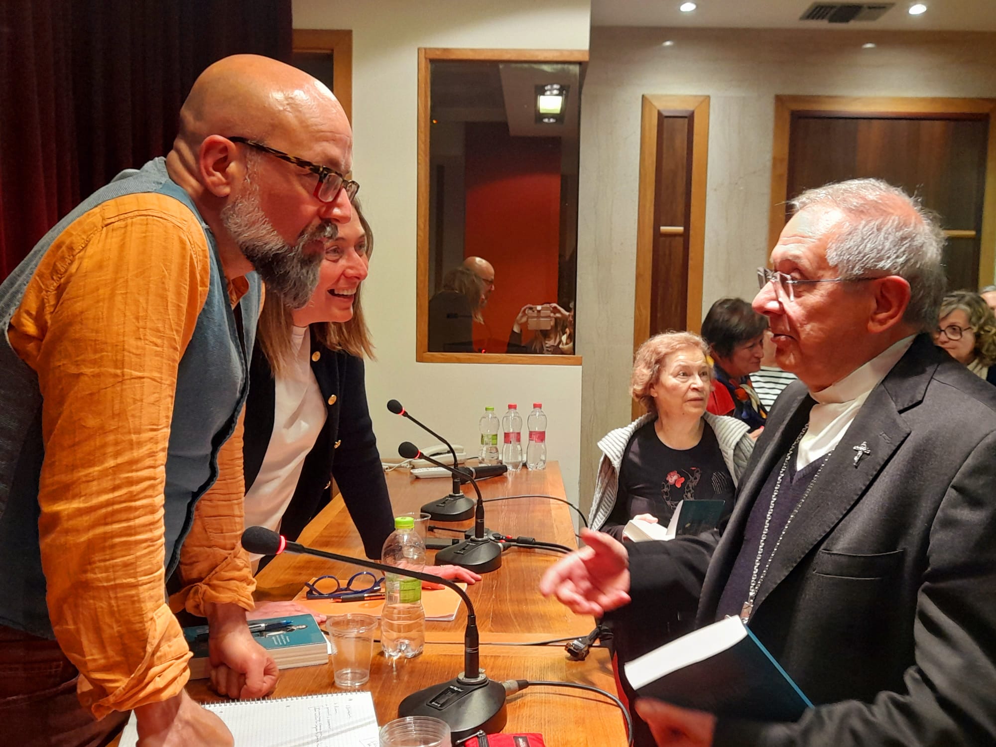 L’incontro, organizzato dalla Libreria “Libri ed Eventi” in collaborazione con il Centro Culturale “La Mongolfiera“, è stato moderato da Emilio Cistola, presidente del Centro, e Mimmo Minuto, proprietario della Libreria e decano dei librai sambenedettesi che da oltre quarant’anni è al timone della rassegna “Incontri con l’autore”, una iniziativa che nel tempo ha portato nella città rivierasca numerosi e prestigiosi personaggi della cultura nazionale ed internazionale. Presente in prima fila anche il vescovo Carlo Bresciani.