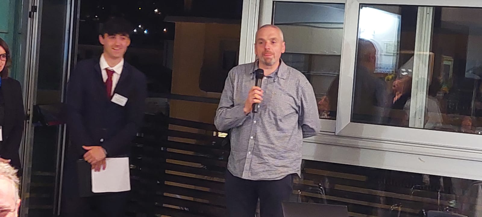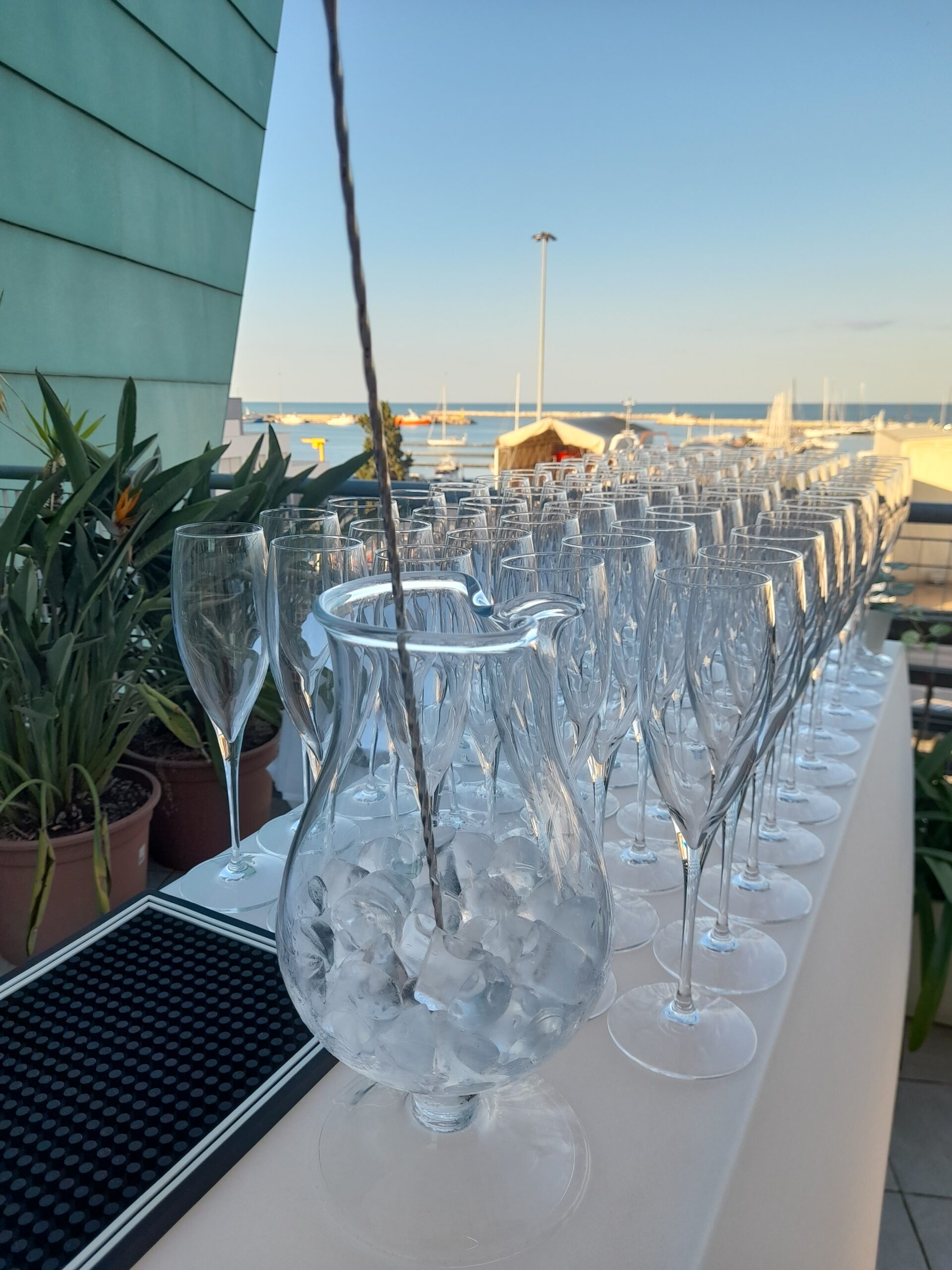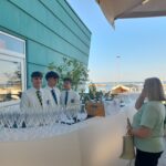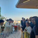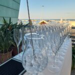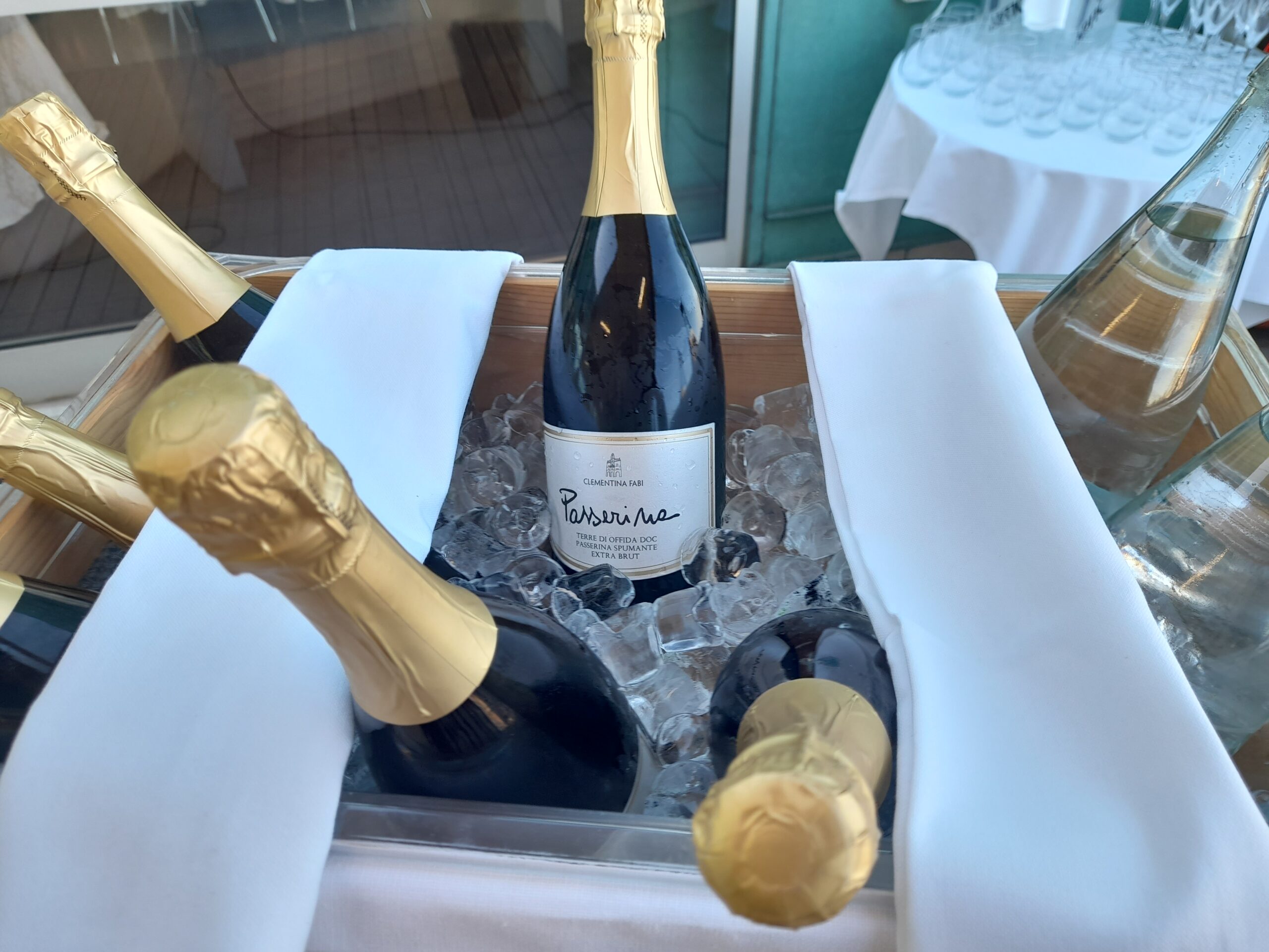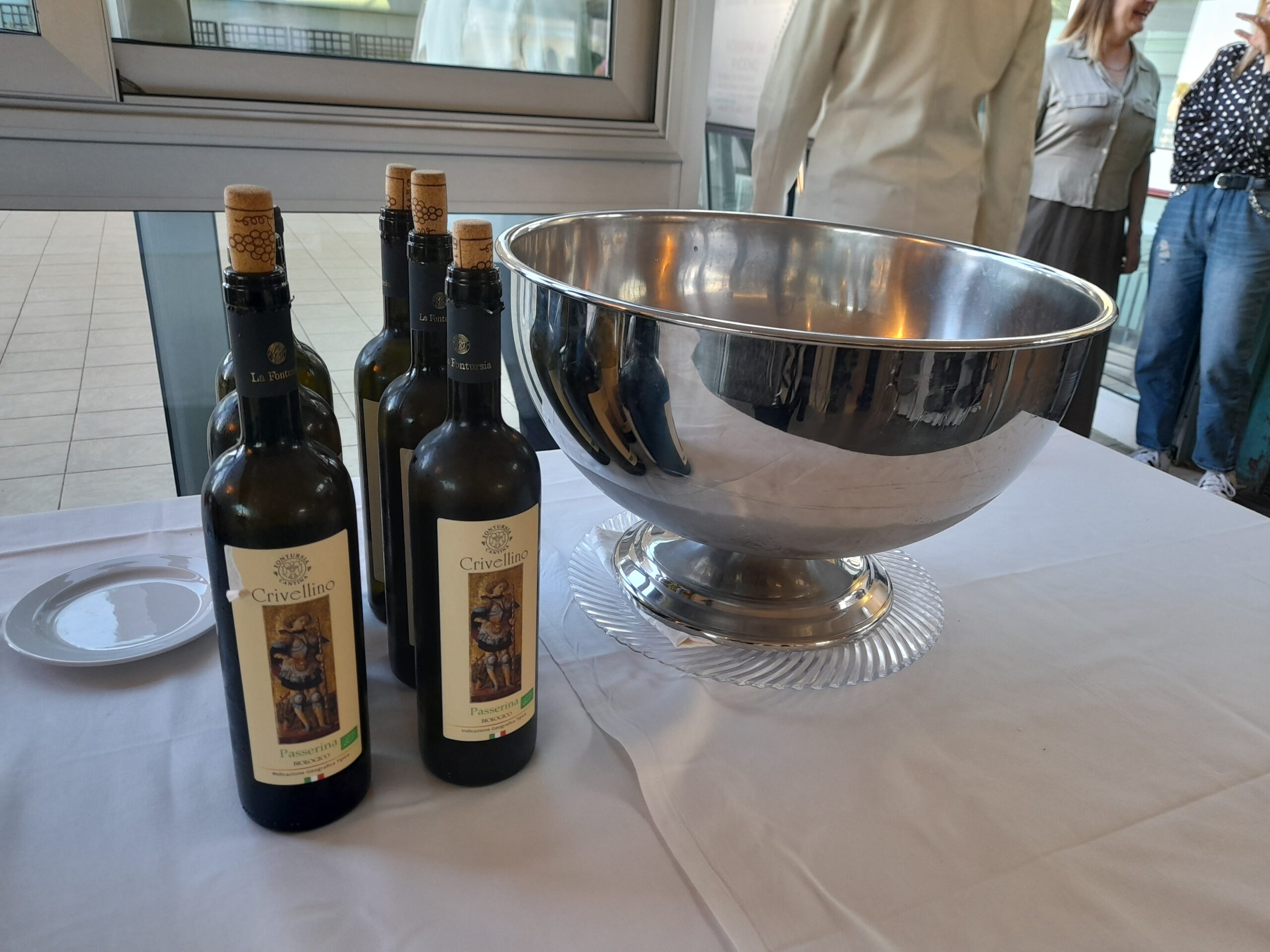 Nicola Boniolo, in rappresentanza dell’Azienda Vitivinicola Le Vigne di Clementina Fabi, ha detto: “La nostra azienda si trova a Montedinove, a circa 500 mt sopra il livello del mare, dove abbiamo diciotto ettari di produzione. Stasera siamo stati presenti all’evento dell’Alberghiero con la nostra passerina, Terre di Offida DOC, spumantizzata in cantina con il metodo Martinotti – o Charmat, che dir si voglia –, le cui bollicine hanno ben accompagnato l’aperitivo gustato in terrazza. Brindare in questa splendida cornice con vista sul mare, ha aggiunto al piacere del palato anche quello degli occhi. Un po’ come facciamo anche nella nostra cantina, in cui abbiamo una sala degustazione con piscina in cui gli ospiti possono assaggiare le nostre eccellenze, ammirando scorci suggestivi dei Monti Sibillini. Le nostre sinuose colline, infatti, negli ultimi anni iniziano ad attrarre un turismo wellness, fatto di passeggiate salutari nella natura incontaminata o di attività sportive come il ciclismo, che si affianca a quello enogastronimico e che ne diventa motore e propulsore”.