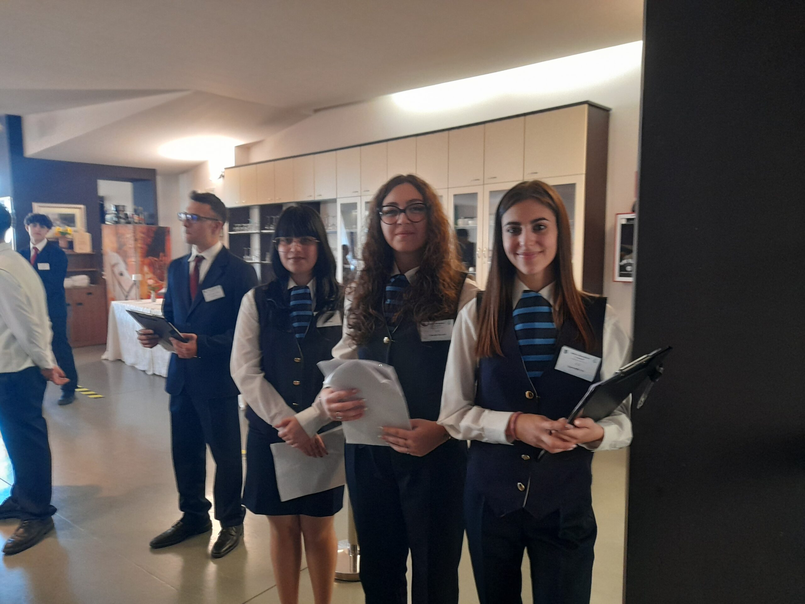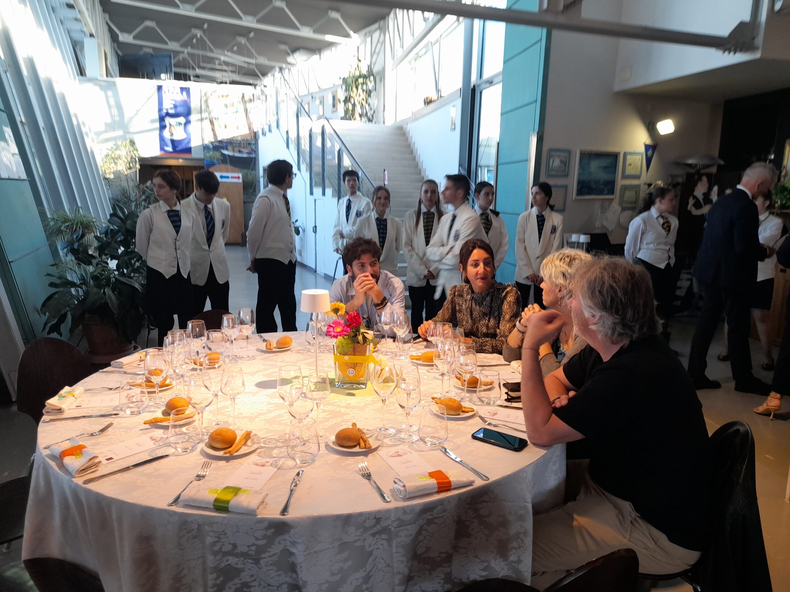 La serata ha registrato la presenza del primo cittadino di San Benedetto del Tronto, Antonio Spazzafumo, dell’Assessora alla Cultura, Lia Sebastiani, e del presidente della società PicenAmbiente, Rolando Rosetti, oltre che del dirigente scolastico dell’Istituto, prof. Vincenzo Moretti, e della referente del progetto, prof.ssa Cinzia Quagliarini. Presenti anche i produttori e le maestranze che hanno fornito le materie prime e le proprie competenze per il convivio: il maestro gelatiere Ennio Cannella, proprietario della nota catena di Gelaterie “Voglia di …”; Enrico Ciarrocchi, proprietario del Panificio Ciarrocchi; Giammarco Veccia, proprietario dell’Azienda Vitivinicola Fontursia di Ripatransone; Nicola Boniolo, enologo dell’Azienda Vitivinicola Le Vigne di Montedinove.