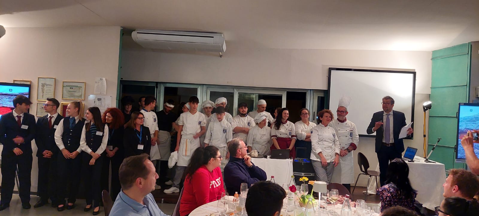 A concludere la serata è stato il dirigente Moretti, che ha ringraziato tutti gli studenti e i docenti dell’Istituto per l’impegno e la passione che li contraddistinguono e che mettono in campo in ogni laboratorio organizzato: “In questo evento, in particolare, voglio menzionare gli studenti della Cucina, coordinati dal prof. Giovanni De Mola e, per il corso serale, dalla prof.ssa Irene Di Gennaro; poi gli studenti dell’Accoglienza coordinati dalla prof.ssa Carlotta Caliò; inoltre gli studenti impegnati nel servizio in Sala, guidati dal prof. Giovanni Acciarri; infine la prof.ssa Cinzia Quagliarini, che, oltre a farci scoprire le caratteristiche nutrizionali del buon cibo, ha organizzato tutti gli eventi del Venerdì all’Alberghiero che hanno riscosso un grande successo di partecipazione e di critica”.