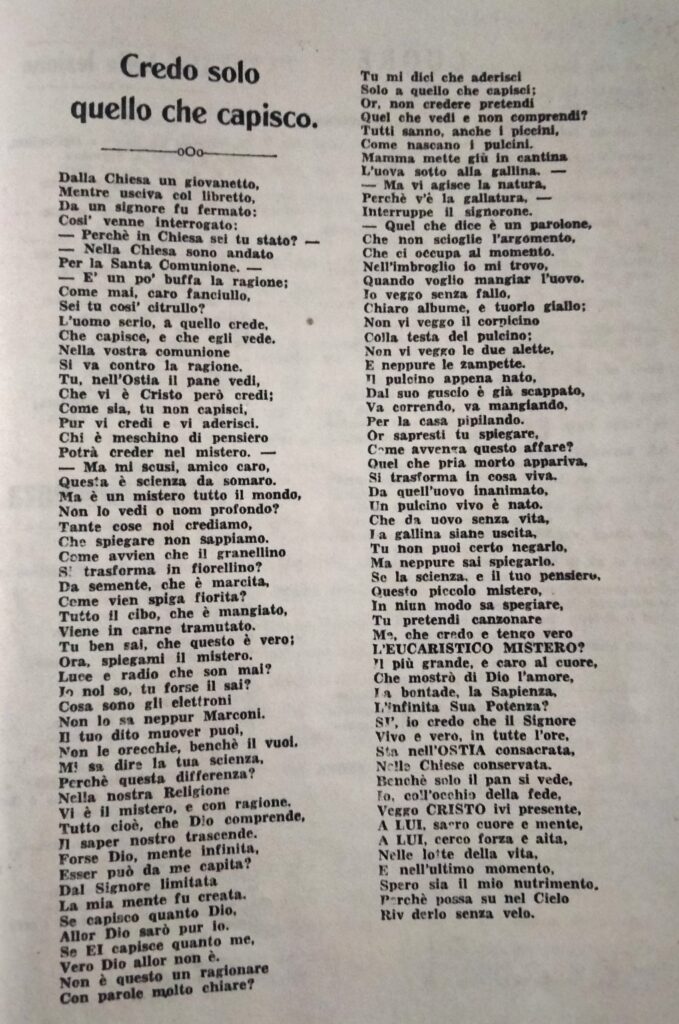 Podcast: Tra i Versi Vari che “Lu Curate” don Francesco Sciocchetti ci ha lasciato, trovo un’altra composizione in Rima particolarmente interessante che riguarda Il Mistero dell’Eucarestia.