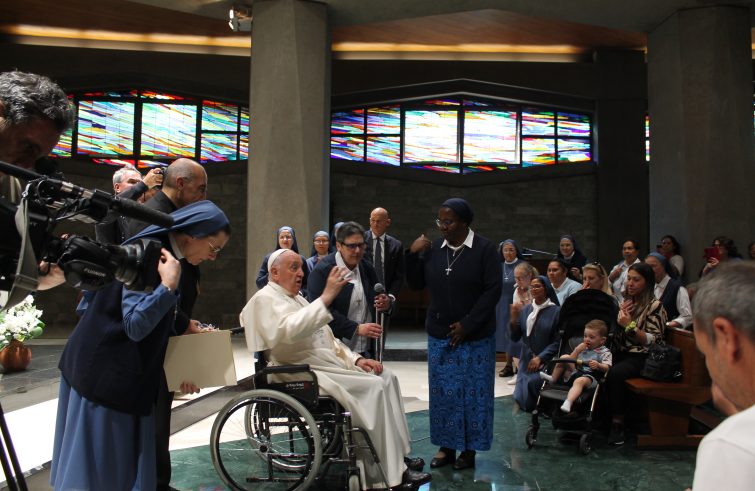 “Benvenuto nella nostra Casa, Papa Francesco”. Sono state queste le parole con cui le Pie Discepole del Divin Maestro hanno accolto il 29 maggio, il Santo Padre che si è recato presso la loro Casa (via Portuense, 739) per incontrare i sacerdoti della diocesi di Roma fino al decimo anno di ordinazione. Con occhi emozionati, tra applausi e sorrisi calorosi, le Pie Discepole hanno ricevuto questa particolare gioia proprio nell’anno in cui stanno celebrando i loro 100 anni di fondazione (1924-2024).