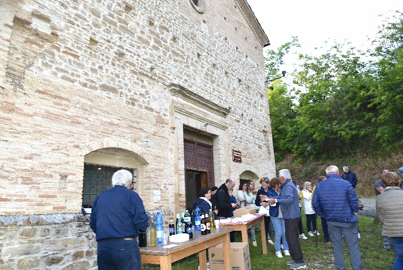 All’uscita dal Santuario, al termine delle cerimonie di questo particolare e straordinario pomeriggio, altra sorpresa: i “contradaioli” avevano preparato per i convenuti tanta pizza e dolci accompagnati da ottimi vini locali e bibite!