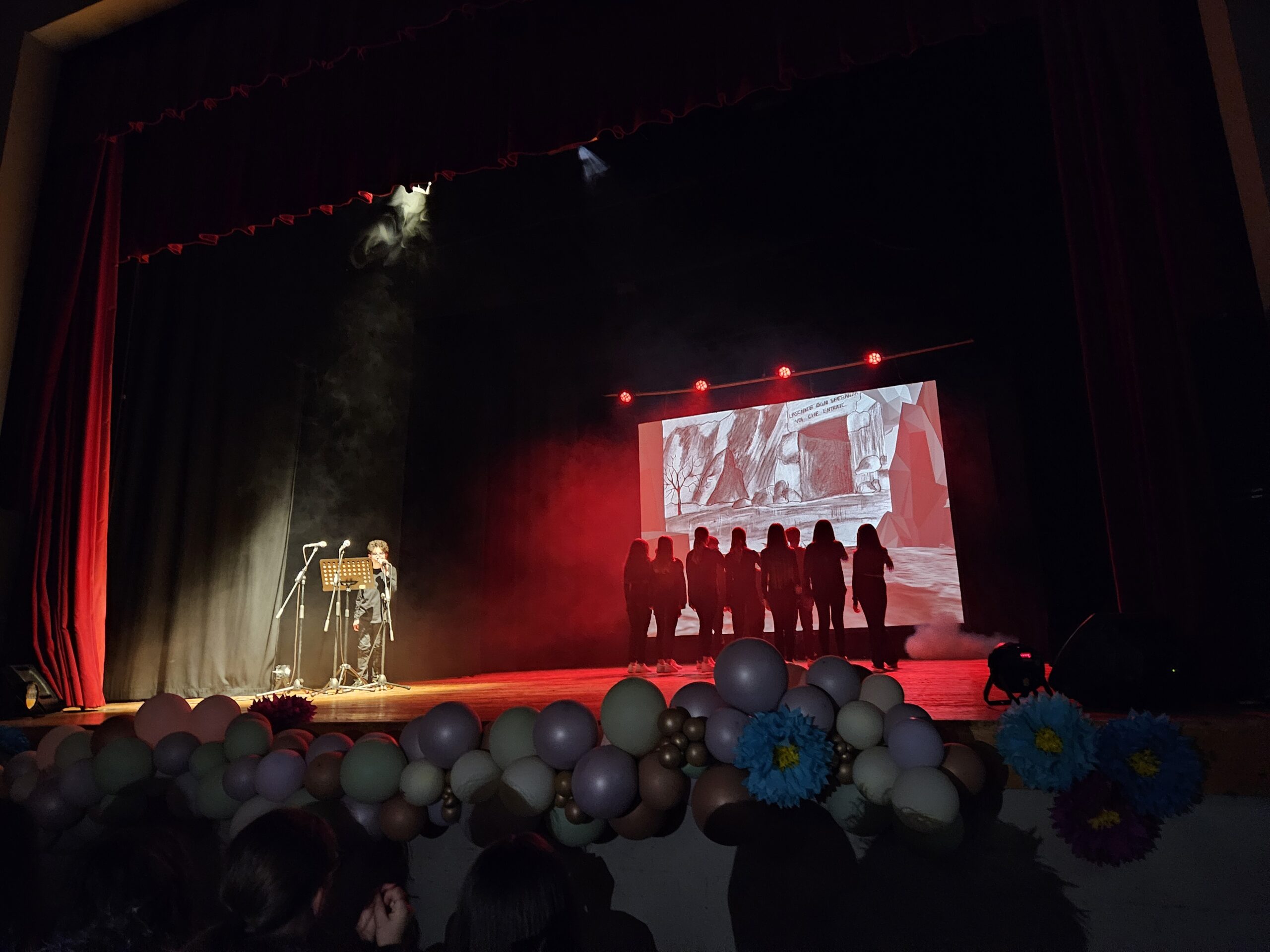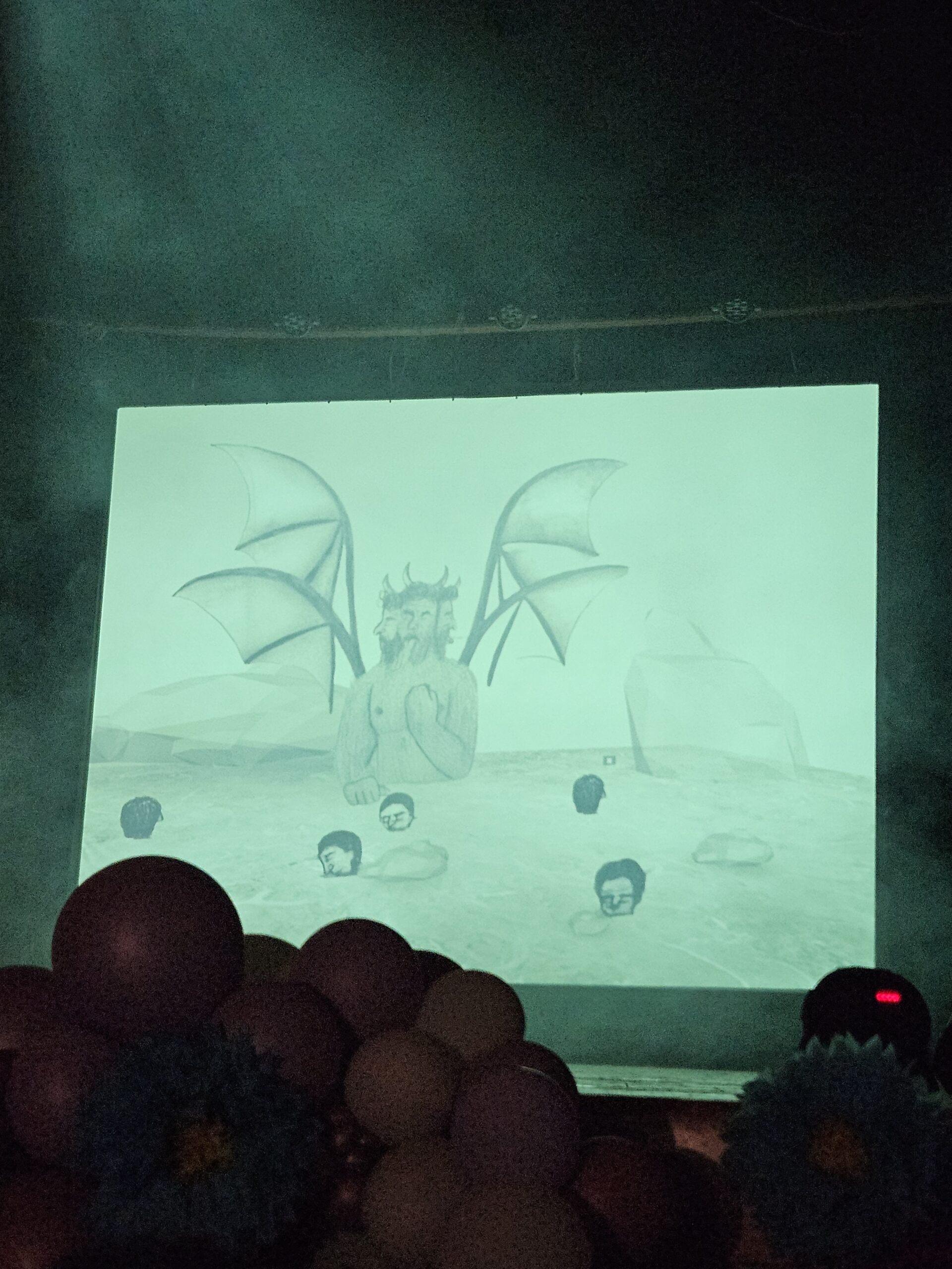 Le scenografie sono state curate con le animazioni digitali molto suggestive e surreali, dalla Profssa Elisabetta Gricinella mentre i disegni delle stesse dall’alunna della 2C Ginevra Marconi.