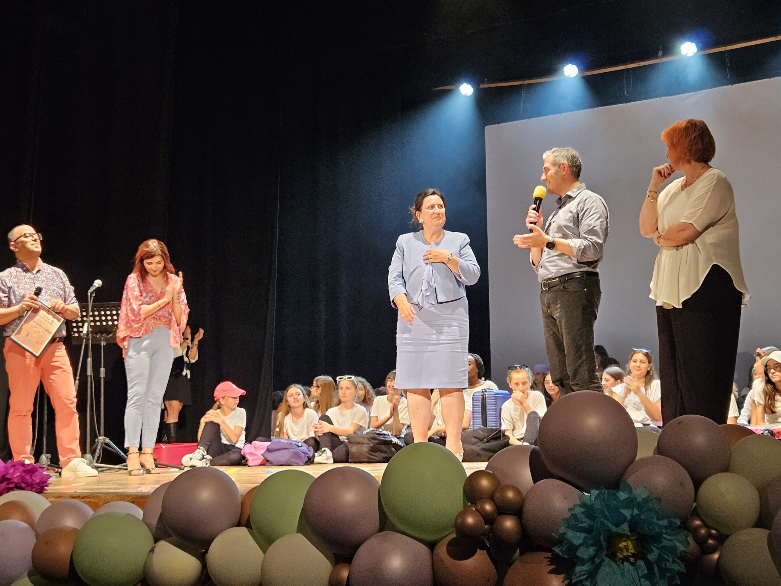 GROTTAMMARE – Sul tema del Viaggio, sia interiore e quindi di crescita personale ma anche reale “Alla scoperta di nuovi mondi” come recitava una nota serie televisiva di tanti anni fa, i ragazzi dell’Istituto Comprensivo Giacomo Leopardi di Grottammare, diretti dalla Preside Dottoressa Luigina Silvestri, hanno realizzato lo spettacolo di fine anno scolastico venerdì 31 maggio al Teatro delle Energie. Ad organizzare il tutto la Vice preside dell’Istituto, Profssa Luigina Ceddia con la 2C e 2B ed altre classi, mentre per la parte che riguarda la scuola primaria l’altra vice preside, l’insegante Franca Basso con la prof.ssa Federica Chiappini per le musiche.
