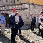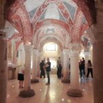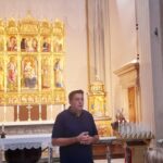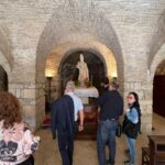 Oltre al Museo, numerosi sono stati i luoghi raggiunti dal gruppo di studenti e docenti. Al mattino i pellegrini hanno visitato il Duomo di Sant’Emidio, sotto la guida sapiente ed esperta del prof. Andrea Viozzi, il quale ha incantato gli studenti, raccontando la genesi, il contesto storico e le caratteristiche delle opere architettoniche, scultoree e pittoriche presenti all’interno dell’edificio sacro: in particolare il polittico di Sant’Emidio dell’artista Carlo Crivelli, il pregevole paliotto in argento che ricopre l’altare, le due tele di Ludovico Trasi, raffiguranti il Battesimo di Polisia e la Decapitazione di Sant’Emidio, tutte opere preziose conservate all’interno della Cappella del Santissimo Sacramento; invece nella cripta, sotto al presbiterio, la tomba di Sant’Emidio, il gruppo marmoreo di Lazzaro Giosafatti raffigurante Sant’Emidio che battezza Polisia, i preziosi mosaici raffiguranti la storia della Chiesa ascolana, gli antichi affreschi risalenti ai sec. XIII e XIV che sono stati scoperti durante i lavori di restauro partiti nel 2019.