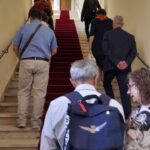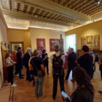 L’incontro è avvenuto alle ore 12:30, al secondo piano di Palazzo Roverella, al termine della visita al Museo Diocesano, ospitato al piano sottostante, dove il gruppo di viaggiatori aveva avuto l’opportunità, durante la mattinata, di ammirare una preziosa raccolta di arte sacra, importante espressione della cultura del territorio ascolano, che comprende preziosi dipinti di Carlo Crivelli, Pietro Alemanno e Cola d’Amatrice, il ciclo di affreschi di Marcello Fogolino raffiguranti episodi della vita di Mosè, la statua di Sant’Emidio di Pietro Vannini, oltre a varie sculture lignee ed in pietra e a frammenti decorativi, arredi ed argenterie sacre, tra i quali anche una croce, donata da papa Niccolò IV, contenente una preziosissima reliquia della Santa Croce.