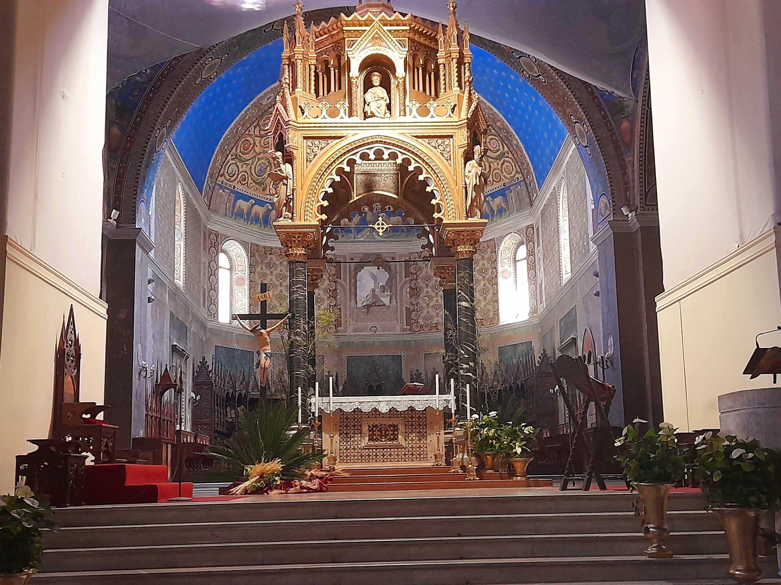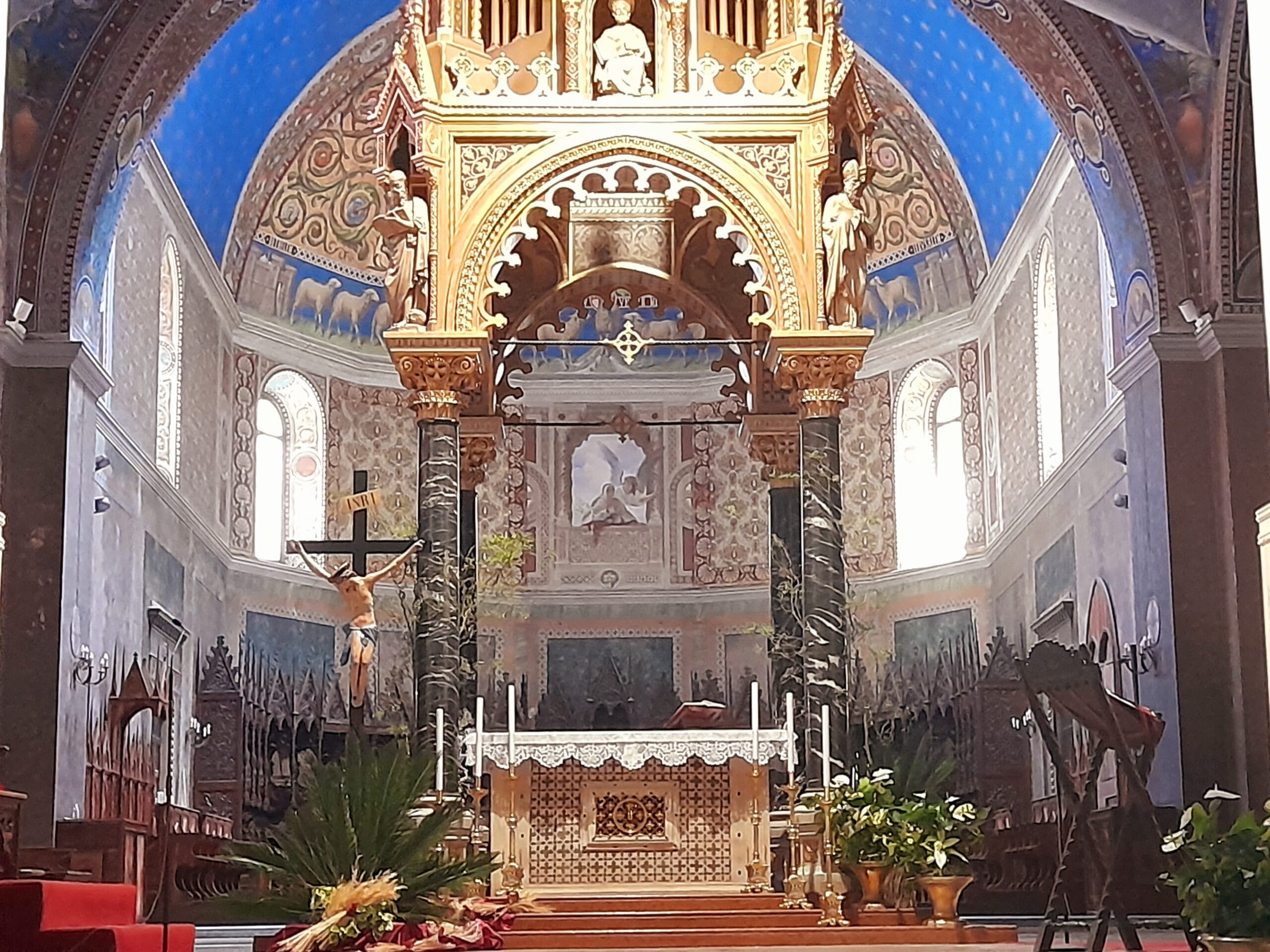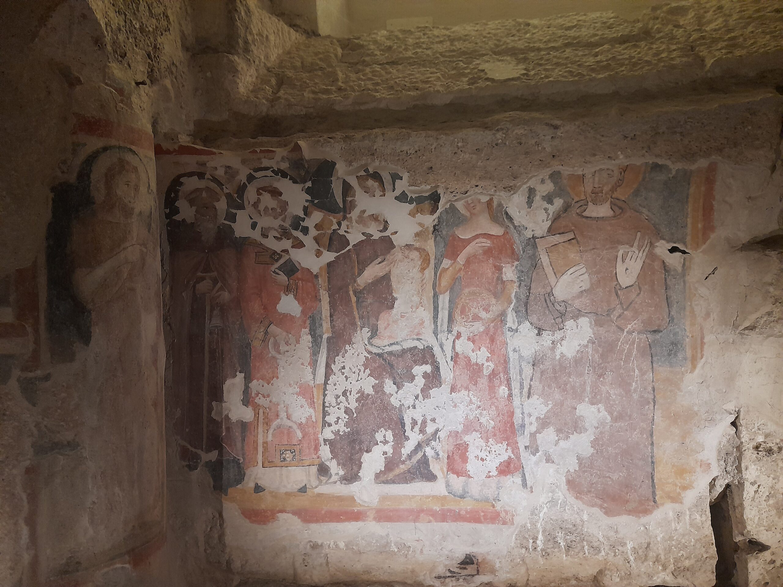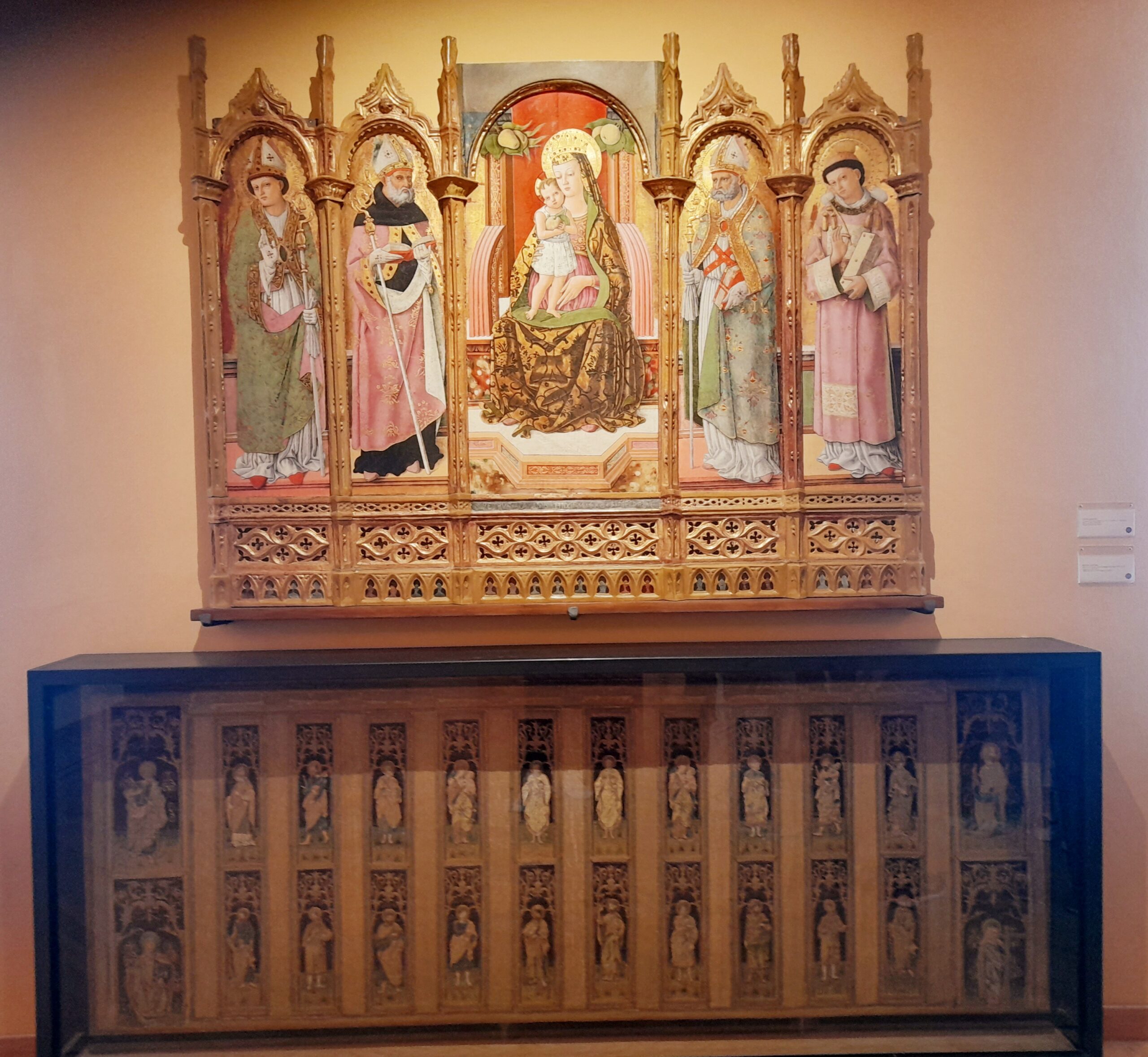 Oltre al Museo, numerosi sono stati i luoghi raggiunti dal gruppo di studenti e docenti. Al mattino i pellegrini hanno visitato il Duomo di Sant’Emidio, sotto la guida sapiente ed esperta del prof. Andrea Viozzi, il quale ha incantato gli studenti, raccontando la genesi, il contesto storico e le caratteristiche delle opere architettoniche, scultoree e pittoriche presenti all’interno dell’edificio sacro: in particolare il polittico di Sant’Emidio dell’artista Carlo Crivelli, il pregevole paliotto in argento che ricopre l’altare, le due tele di Ludovico Trasi, raffiguranti il Battesimo di Polisia e la Decapitazione di Sant’Emidio, tutte opere preziose conservate all’interno della Cappella del Santissimo Sacramento; invece nella cripta, sotto al presbiterio, la tomba di Sant’Emidio, il gruppo marmoreo di Lazzaro Giosafatti raffigurante Sant’Emidio che battezza Polisia, i preziosi mosaici raffiguranti la storia della Chiesa ascolana, gli antichi affreschi risalenti ai sec. XIII e XIV che sono stati scoperti durante i lavori di restauro partiti nel 2019.