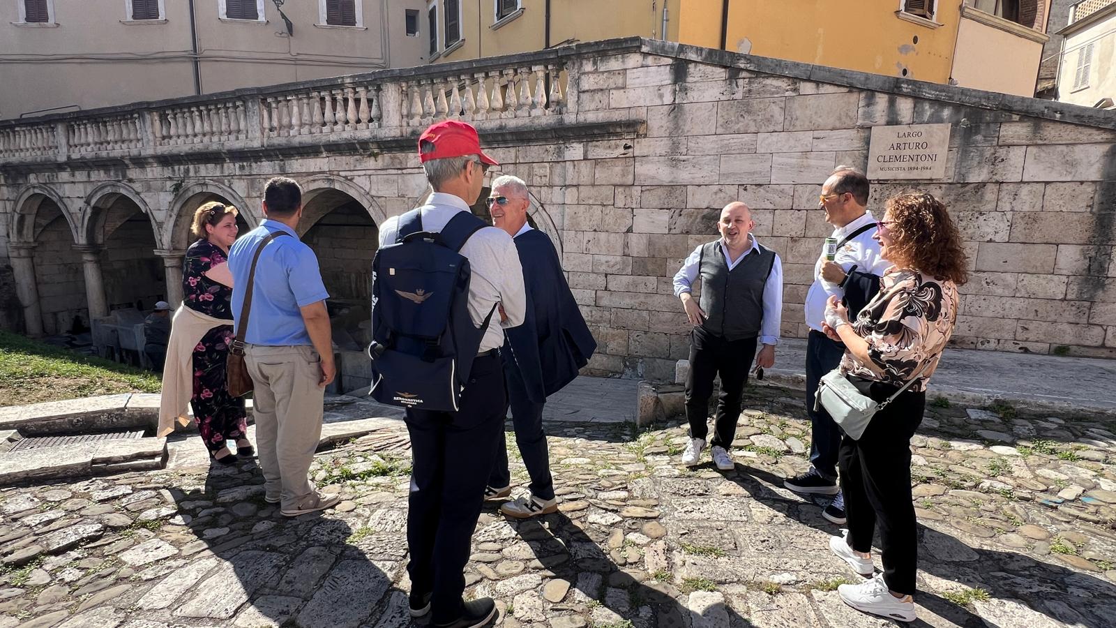 ASCOLI PICENO – È stata Ascoli Piceno la città scelta dalla Scuola di Formazione Teologica della Diocesi di San Benedetto del Tronto – Ripatransone – Montalto come meta dell’uscita didattica di fine anno accademico 2023/2024. Il viaggio, alla scoperta della storia e dei tesori artistici del capoluogo di Provincia, è avvenuto Sabato 1 Giugno ed è durato l’intera giornata. Presenti cinque docenti della SFT: la prof.ssa Francesca Benigni, vicedirettrice della Scuola e docente di Sacramentaria, don Francesco Mangani, docente di Mariologia, don Gian Luca Pelliccioni, docente di Teologia Fondamentale, la prof.ssa Giancarla Perotti, docente di Storia delle Religioni, e il prof. Andrea Viozzi, docente di Teologia dell’Arte. Presente anche l’ing. Alessio Perotti, segretario della Scuola, che ha organizzato l’uscita insieme al direttore, don Lorenzo Bruni. Oltre venti gli studenti della Scuola che hanno preso parte alla gita fuori porta e che hanno ricevuto una piacevole sorpresa: il saluto del vescovo delle due Diocesi del Piceno, Mons. Gianpiero Palmieri.