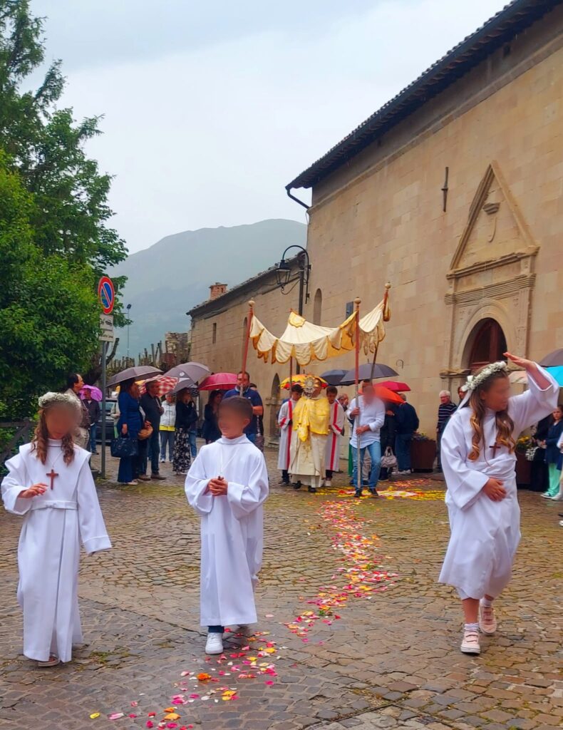 MONTEMONACO – La Festa della Repubblica di ieri, 2 Giugno 2024, ha coinciso con la solennità del Corpus Domini e, per la comunità cristiana di Montemonaco, è stato anche il giorno in cui tre dei suoi piccoli concittadini hanno ricevuto la Prima Comunione. Una gioia grandissima!