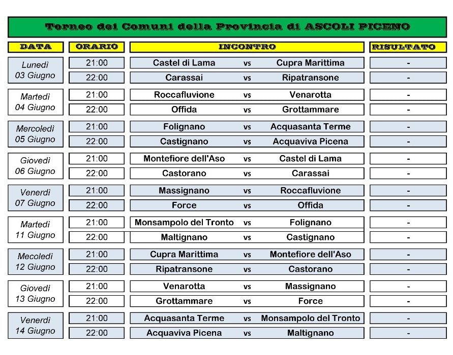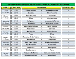 RIPATRANSONE – Inizierà stasera, Lunedì 3, e terminerà il 29 Giugno il Torneo dei Comuni della Provincia di Ascoli Piceno, che coinvolgerà ben diciotto Comuni del Piceno. Per saperne di più abbiamo incontrato Cristiano Marcozzi, che ha avuto l’idea di organizzarlo.