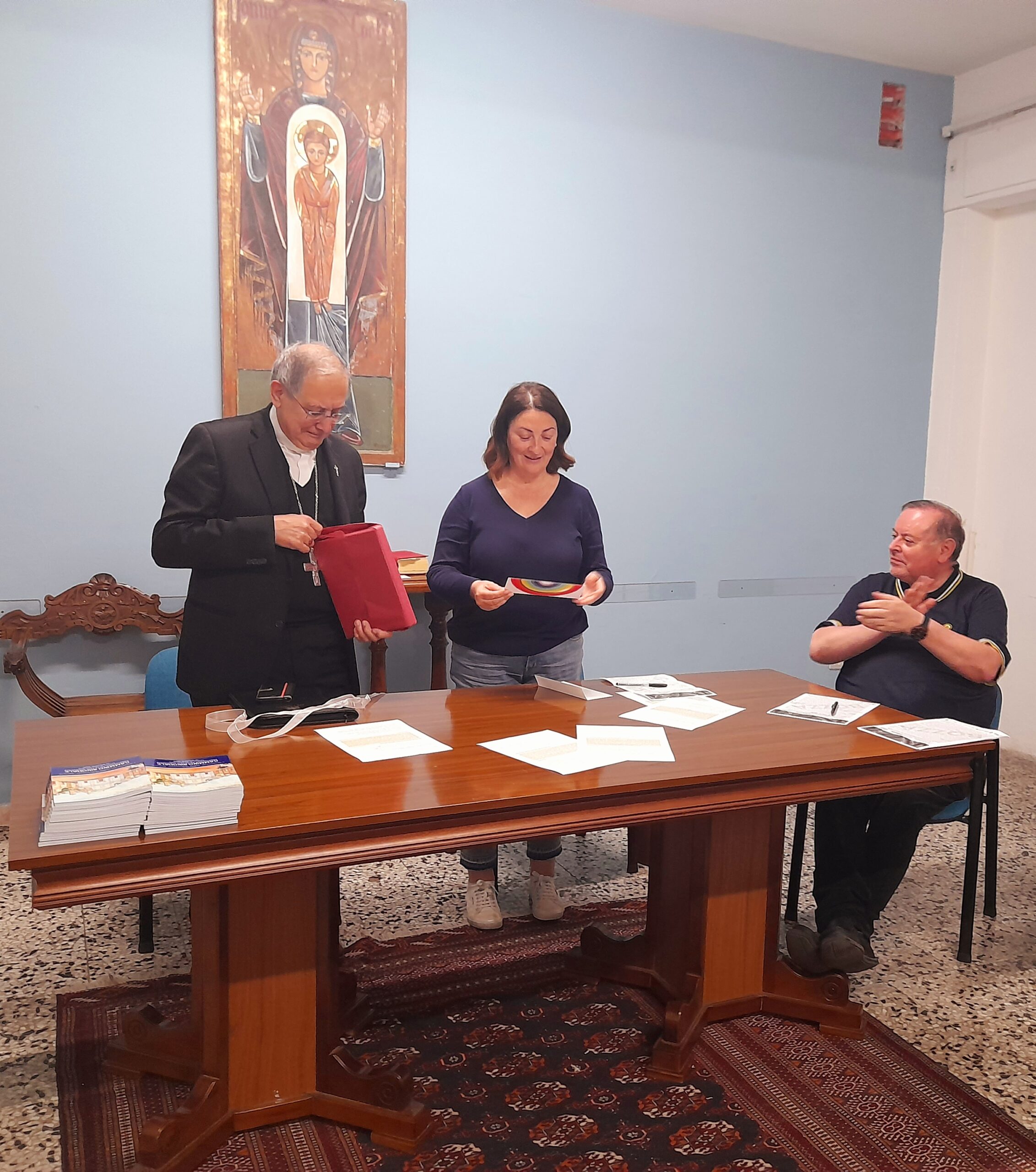 Il vescovo Bresciani, dopo aver ringraziato per il dono ricevuto, ha parlato ai presenti con un breve discorso che è suonato, alle orecchie degli uditori, come una sorta di lascito spirituale: “Come laici, cristiani e battezzati, avete un ruolo fondamentale nella Chiesa. E non soltanto perché c’è carenza di preti, ma perché la Chiesa è l’insieme di tutti i battezzati. Tanto più i laici cristiani diventeranno consapevoli della loro corresponsabilità nella Chiesa, tanto più la Chiesa avrà un futuro. Il clero, senza dubbio, ci deve essere, ha una funzione fondamentale, sacramentale, deve guidare, ma bisogna recuperare molto più profondamente il senso della corresponsabilità. Spesso facciamo fatica ad andare in questa direzione perché a volte manchiamo forse anche di strumenti, di prospettive, di idee su come effettuare questo cambiamento. Il cammino sinodale ci sta aiutando, ma siamo chiamati ad essere ancora più creativi ed attivi”.