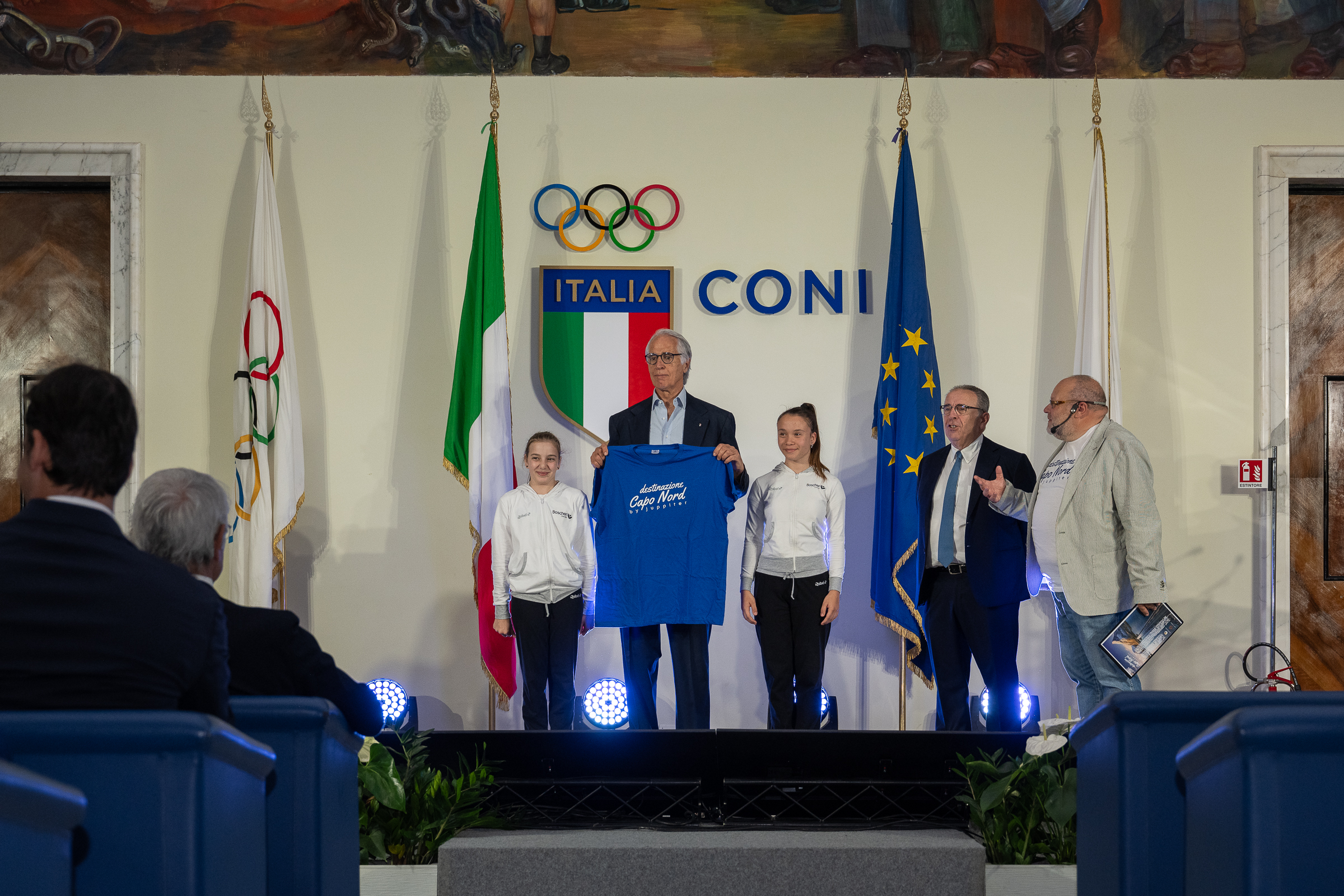 Durante la presentazione dell’iniziativa, nel Salone d’onore del Coni a Roma, la prima maglia della Carovana è stata consegnata al presidente del Coni, Giovanni Malagò, che in molte circostanze ha seguito le iniziative di Juppiter.“Destinazione Capo Nord – ha osservato – è un’iniziativa entusiasmante che nasconde la potenza di un messaggio unico, dedicato ad adolescenti e ragazzi ‘speciali’, e si traduce nella capacità di vedere traguardi dove altri scorgono difficoltà”.Per il ministro per lo Sport e i Giovani, Andrea Abodi, “questo viaggio rappresenta la metafora della vita, un allenamento dell’anima”. Ha annunciato la sua voglia di partecipare a una delle tappe del viaggio don Antonio Mazzi, sempre pronto a raccogliere la sfida dei giovani:“La Carovana è un’avventura giusta. Agli adolescenti servono avventure positive e noi siamo chiamati a realizzarle”.