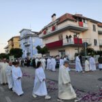 La Funzione si è svolta nel prato-giardino adiacente alla Chiesa della Gran Madre di Dio, gremita di fedeli provenienti dalle quattro Parrocchie cittadine. Una grande e sentita processione si è articolata per le vie, fino a concludersi con la solenne benedizione nel Parco 1 Maggio. Tantissimo l’affetto dimostrato dai parrocchiani della Gran Madre di Dio all’amatissimo “Vescovo Lucio” che ha idealmente nei cuori di tutti ” la sua seconda casa a Grottammare”, come ci ha detto commossa una signora anziana presente alla celebrazione.