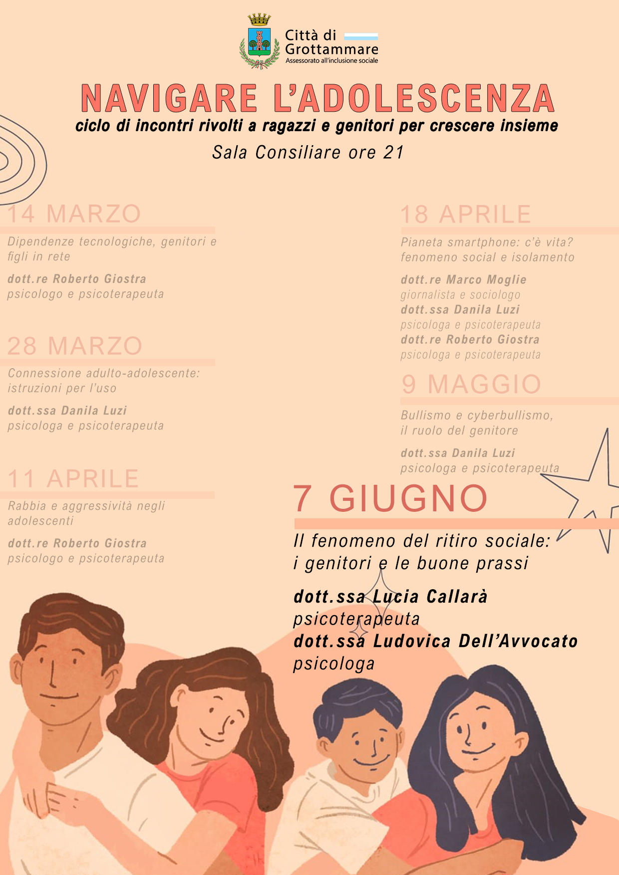 GROTTAMMARE – Per l’ultimo appuntamento di “Navigare l’adolescenza” un tema che investe l’intera comunità: il fenomeno del ritiro sociale.