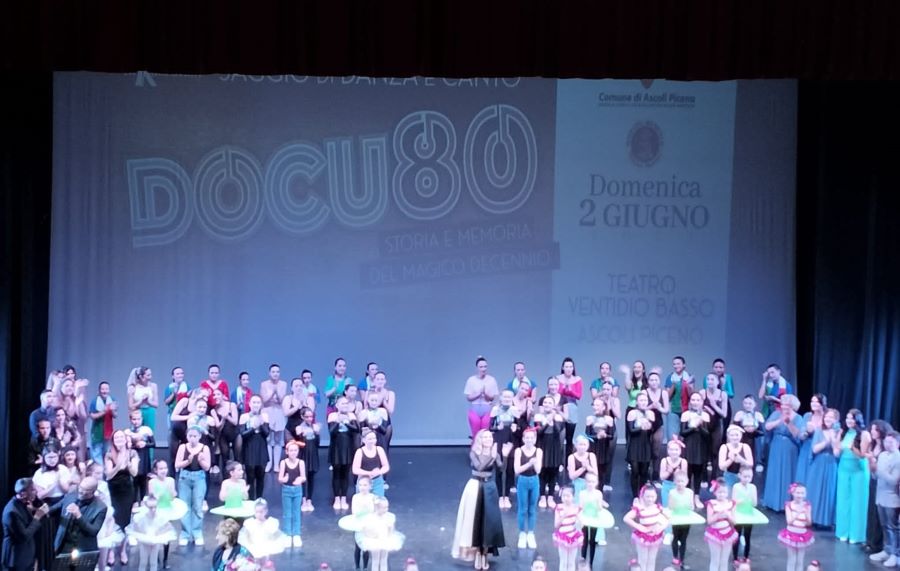 ACQUAVIVA PICENA – Grande successo di pubblico e di critica per lo spettacolo “Docu80”, andato in scena presso il Teatro Ventidio Basso in Ascoli Piceno, che l’Istituto “G.B. Spontini” di Ascoli Piceno ha realizzato in collaborazione con la “Koreutica” della dott.ssa Maria Luigia Neroni e con il Patrocinio del Comune di Ascoli Piceno.