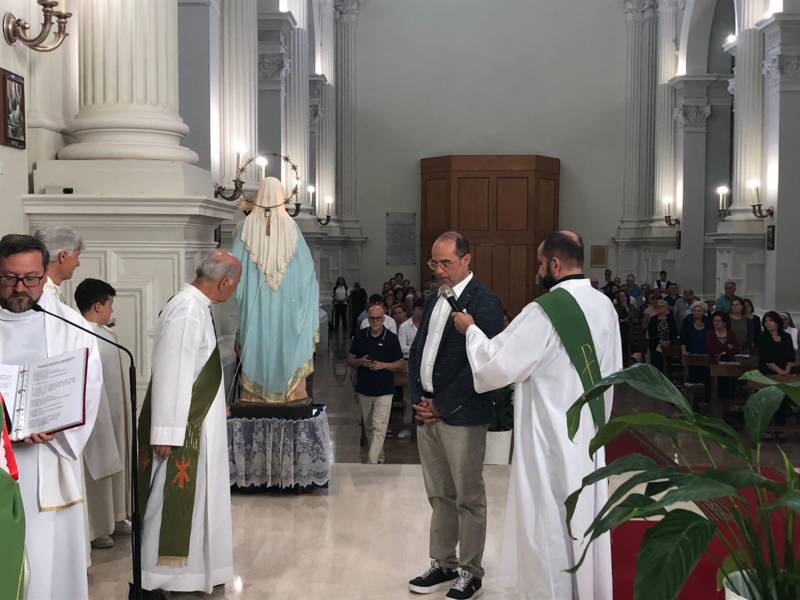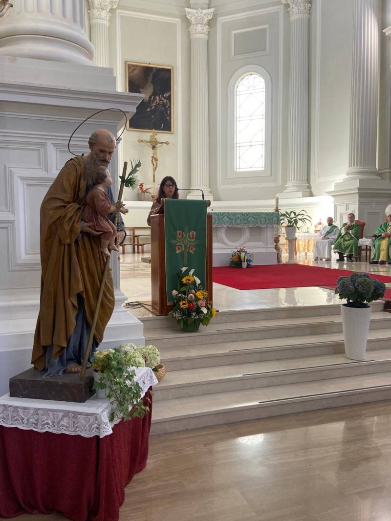 Tra i numerosi familiari, parenti, amici e parrocchiani presenti alla celebrazione, c’era anche Suor Cristina Di Paolo, responsabile della Casa di Preghiera della Congregazione “Missionarie della Fanciullezza”, ubicata a Force, nella casa paterna della fondatrice, Madre Flora Pallotta. Queste le sue parole: “Conosco Roberto da molti anni e, insieme a lui, anche la sua bella famiglia: i figli Francesco e Andrea sono stati miei alunni a catechismo dalle Elementari fino alle Scuole Medie, quando hanno ricevuto il Sacramento della Cresima. Erano bambini molto interessati ad ascoltare, educati e partecipi, segno che Roberto e sua moglie Paola hanno insegnato ai loro figli l’educazione, il rispetto, l’importanza dell’ascolto durante le lezioni di catechismo, la generosità, anche l’importanza di un cammino cristiano nella propria vita. Nella vita privata Roberto è un uomo educato e gentile; in parrocchia è sempre dedito alla preghiera e durante le celebrazioni è attento e vive la Messa in profondità. È stato anche Ministro Straordinario della Comunione e in ogni situazione lo vedo moto unito al Signore. È anche molto attivo in ambito associativo: è stato presidente del settore Adulti dell’Azione Cattolica e da molti anni svolge il servizio di catechista. Siamo molto grati al Signore per il dono di avere nella nostra comunità una persona come Roberto e siamo sicuri che sarà solerte nel cammino che ha intrapreso e che lo condurrà al diaconato. Preghiamo per lui e per la sua famiglia, affinché restino sempre fedeli e uniti l’una all’altro e con il Signore. Il mio augurio, che è anche di tutta la comunità forcese, è quello di crescere sempre più nella fede e nel servizio ai fratelli, dando testimonianza con la sua vita. Preghiamo inoltre il Signore, affinché anche altri fedeli della nostra comunità possano intraprendere un cammino nel diaconato, nel sacerdozio e nella vita religiosa”.