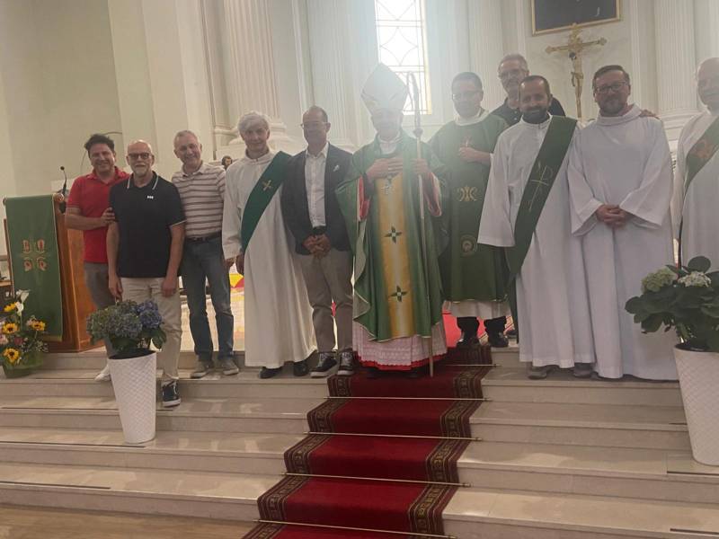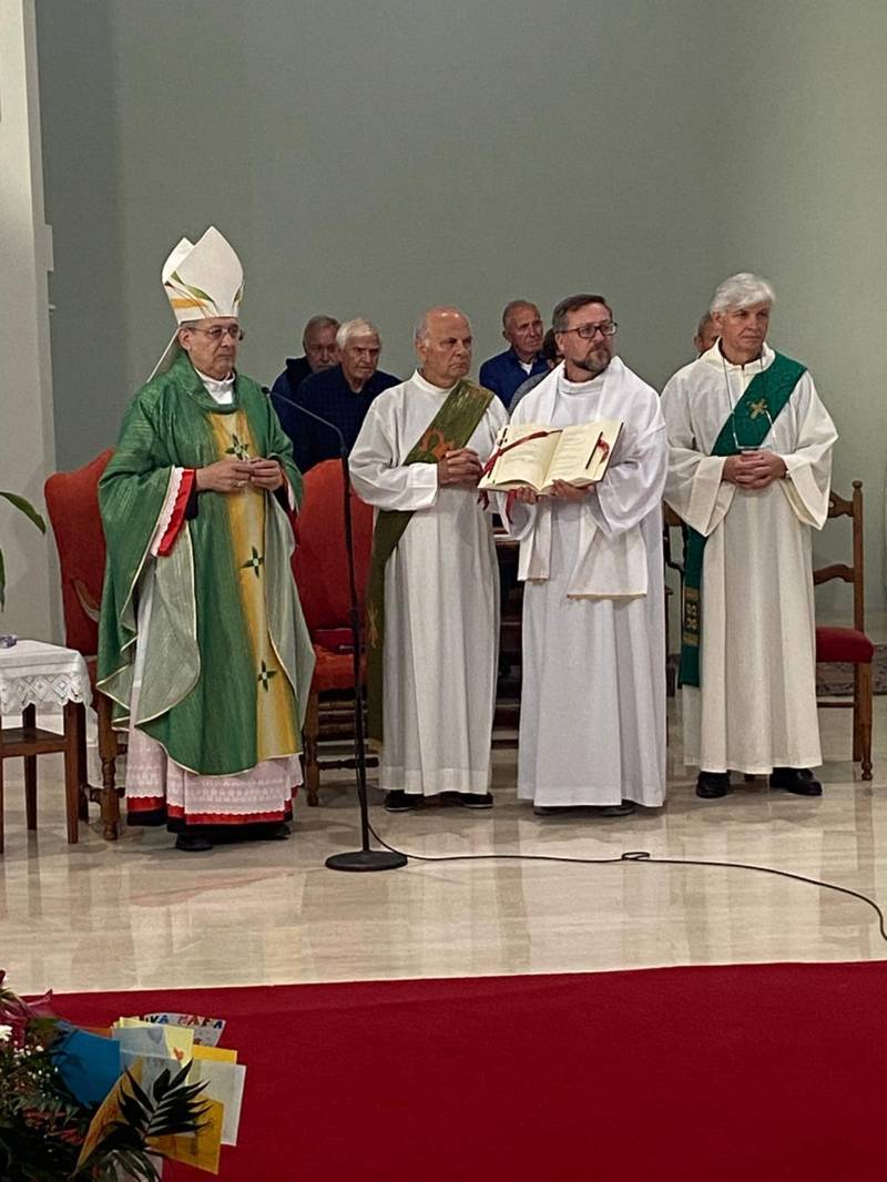 FORCE – Si è celebrata Domenica 9 Giugno, alle ore 18:00, presso la chiesa San Paolo Apostolo in Force, una Santa Messa presieduta dal vescovo Carlo Bresciani e concelebrata dal parroco don Luca Rammella, durante la quale si è svolto il rito di Ammissione agli Ordini Sacri di Roberto Marcoionni, Candidato al Diaconato Permanente. Hanno concelebrato anche i diaconi Natalino Marinozzi, Walter Gandolfi ed Emanuele Imbrescia, oltre a tutta la comunità riunita. Tra i fedeli anche altri candidati al Diaconato appartenenti ad altre Parrocchie, che stanno seguendo insieme a Marcoionni il cammino di preparazione presso la Scuola di Formazione Teologica di San Benedetto del Tronto.
