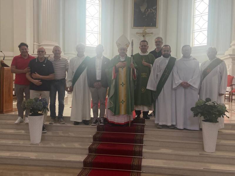 Il vescovo Carlo Bresciani, durante la sua omelia, ha affermato: “Siamo qui oggi per ammettere Roberto agli Ordini Sacri come candidato al Diaconato Permanente, per mettersi completamente a servizio della Chiesa. È bello vedere che con lui ci sono gli altri suoi compagni di viaggio, che fanno lo stesso cammino. In questo momento la nostra Diocesi è gratificata dalla Grazia di Dio, perché c’è un bel gruppetto di candidati al Diaconato: ne sono ben sei, che si mettono in gioco per seguire questa chiamata che il Signore rivolge loro attraverso la Chiesa e che verrà confermata solo al momento dell’Ordinazione. Nella lettera di San Paolo ai Corinzi, che abbiamo appena ascoltato, ci viene presentato un aspetto fondamentale che riguarda tutti i cristiani, quindi anche i diaconi e i candidati al Diaconato: che cosa significa credere in Gesù? La fede non è solo un pensare, un dire: ‘Io credo’. Certamente è anche questo, ma viene aggiunto un aspetto in più: ‘Perciò ho parlato’. La fede quindi non è un custodire intimisticamente tutto quello che io credo dentro di me, bensì è necessario parlare agli altri di quello in cui credo. San Paolo dice: ‘Siate miei imitatori’, ovviamente nel parlare, nel dire della propria fede agli altri. Dunque, portarla agli altri, è un modo di vivere responsabilmente la fede. Oggi in pubblico si parla di tutto; l’unica cosa che viene ritenuta sconveniente è parlare di Dio, di Gesù e della fede! Stasera, invece, quello che stiamo vivendo dice qualcosa di diverso: dice che la fede porta ad assumere una responsabilità non solo verso se stessi, ma anche verso gli altri. Il Diaconato Permanente, infatti, significa mettersi a servizio di Dio nella Chiesa“.