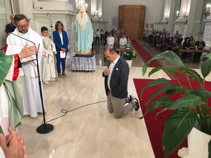 Queste le parole di Roberto Marcoionni: “Il giorno che è stata fissata la data della mia ammissione agli Ordini Sacri come candidato al Diaconato Permanente, non ho notato che si sarebbe trattato del giorno successivo al Pellegrinaggio Macerata – Loreto. Quando il mio amico fraterno e diacono Natalino mi ha proposto di aiutarlo a trasportare i pellegrini a Macerata per effettuare il pellegrinaggio, ho sentito forte nel cuore, quale fosse la cosa giusta da fare, ovvero non preparare il giorno del rito, immerso nella preghiera personale, bensì viverlo con 60.000 fratelli e sorelle, condividendo con loro l’emozione di mettersi sotto il manto della Mamma Celeste, nella Santa Casa di Loreto. Il mio percorso di fede è iniziato in un altro luogo mariano nel 2000, quando io e mia moglie Paola abbiamo affidato il nostro matrimonio alla Madonna dell’Ambro e Domenica scorsa, dopo 24 anni, la mia sposa era ancora vicino a me, davanti al nostro Vescovo, per dare il suo consenso all’inizio del mio percorso Diaconale. Ringrazio i miei figli che, nonostante la loro giovane età, hanno capito quanto fosse importante intraprendere questo percorso e mi sono stati vicino, insieme alle persone a me care. Ringrazio inoltre i sacerdoti che si sono succeduti a Force, che mi hanno dato la possibilità di accompagnare fino alla Cresima, come catechista, tanti ragazzi e ragazze, che mi hanno permesso di diventare ministro straordinario della Comunione e di potermi mettere ancora più assiduamente alla sequela di Gesù. Ringrazio poi tutta la comunità di Force, che, dopo il mio matrimonio con Paola, mi ha aperto le braccia, mi ha donato la sua fiducia e la sua amicizia. Ringrazio infine tutti i diaconi della nostra Diocesi, che hanno accolto me e gli altri candidati con tanto affetto.