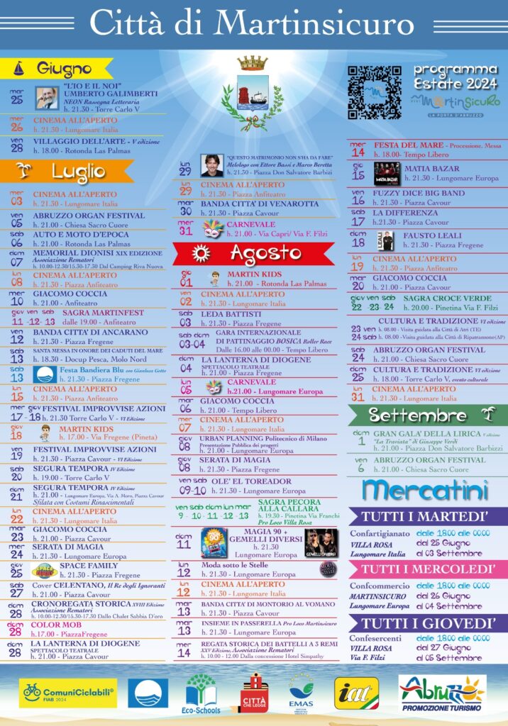 MARTINSICURO – Presentato il calendario degli eventi estivi del Comune di Martinsicuro. Un cartellone, anche quest’anno, ricco di appuntamenti pensati per ogni fascia d’età con spettacoli, incontri culturali, concerti, giochi, rievocazioni storiche ed eventi gastronomici.