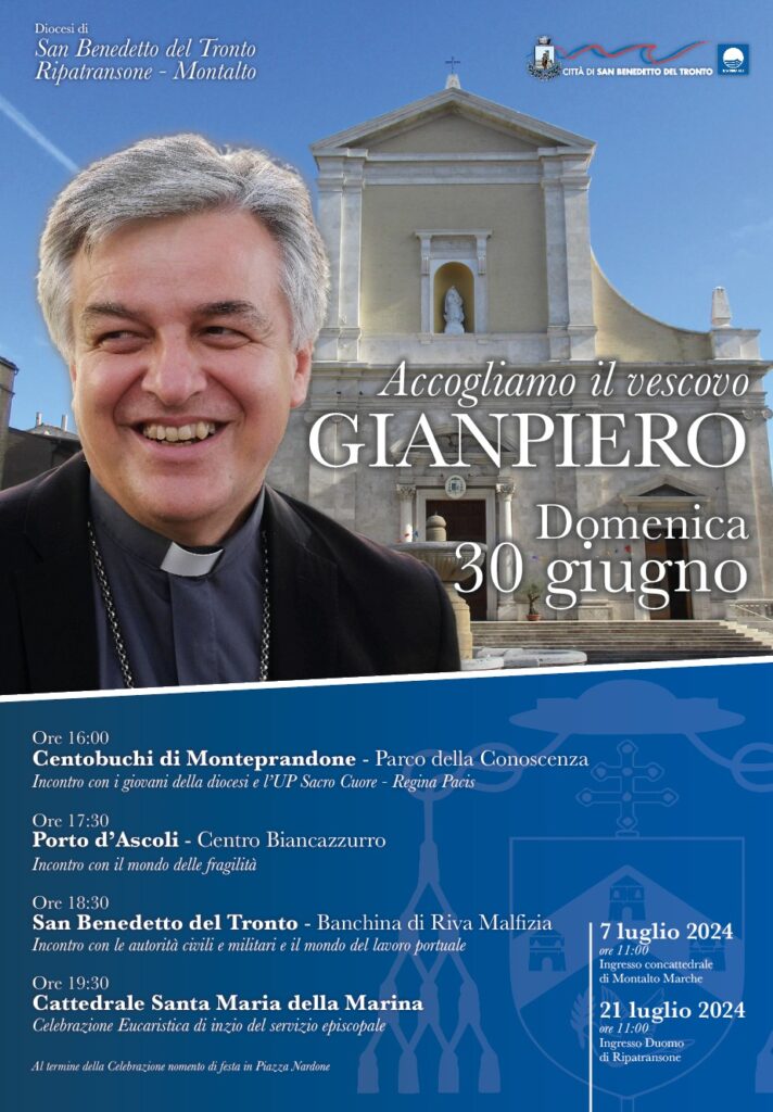 DIOCESI – Definito il programma per l’ingresso del nuovo Vescovo della Diocesi di San Benedetto del Tronto – Ripatransone – Montalto, l’Arcivescovo Gianpiero Palmieri, che avverrà Domenica 30 Giugno.