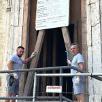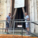 Ai piedi delle scale di accesso un felicissimo Padre Giovanni Mazzoni osservava soddisfatto e sorridente i lavori in corso!