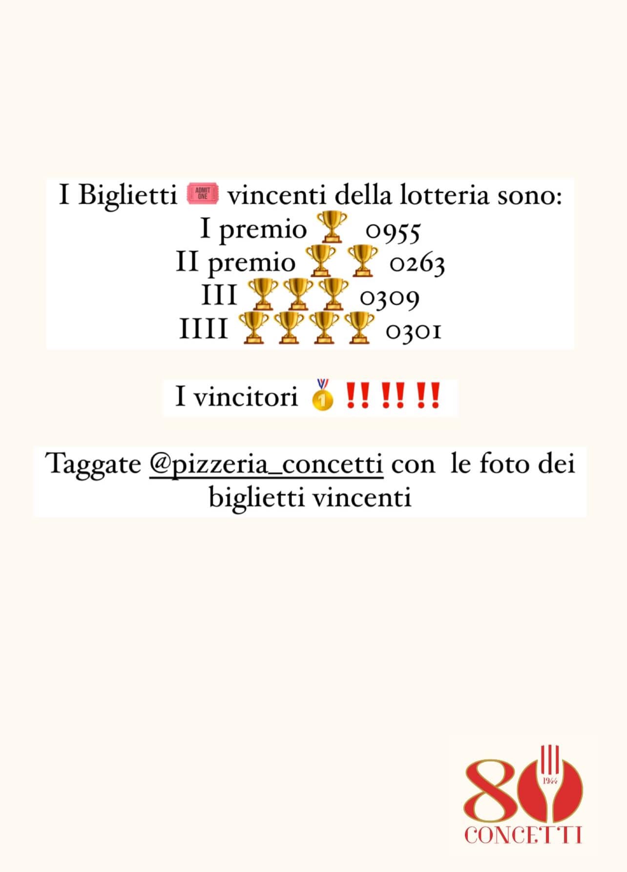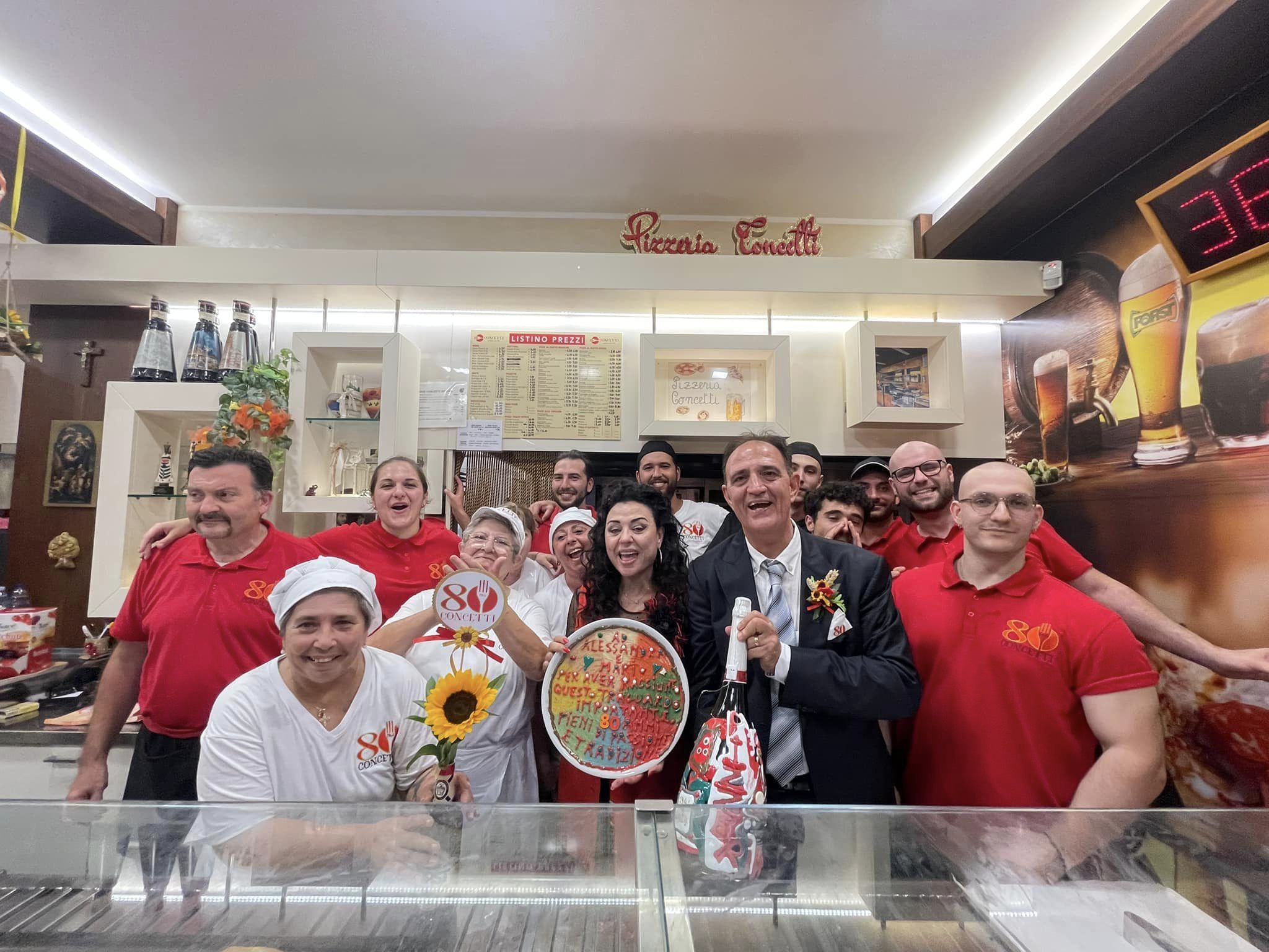 La festa, collocata in piazza Fazzini adiacente alla pizzeria, ha visto la partecipazione di personalità istituzionali, artisti, cantanti e numerosi clienti affezionati; tutti desiderosi di testimoniare tramite la partecipazione, la propria gratitudine e riconoscenza ad una famiglia locale, Concetti, che con la sua attività ha offerto e continua ad offrire alla comunità un posto di ristoro e convivialità, un luogo dove “buon cibo e socialità” è da sempre la caratteristica principale.